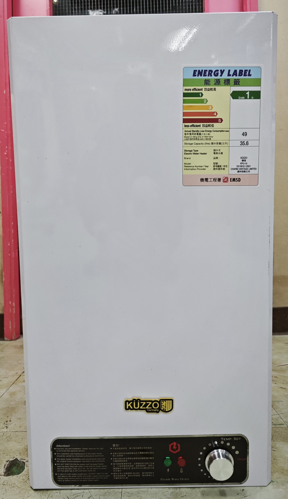 The Electrical and Mechanical Services Department (EMSD) today (Jan. 11) removed one storage type electric water heater model from the record of listed models under the Energy Efficiency (Labelling of Products) Ordinance. Supply of such a product is no longer allowed in Hong Kong with immediate effect.