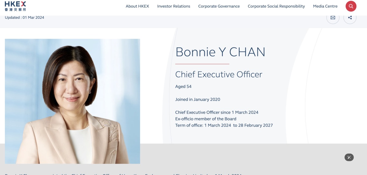 Bonnie Chan, the new chief executive officer of Hong Kong Exchanges and Clearing Ltd. (HKEX), has expressed her optimism over Hong Kong's status as an international financial center, saying that she has seen positive signals from the number of initial public offerings (IPOs) this year.