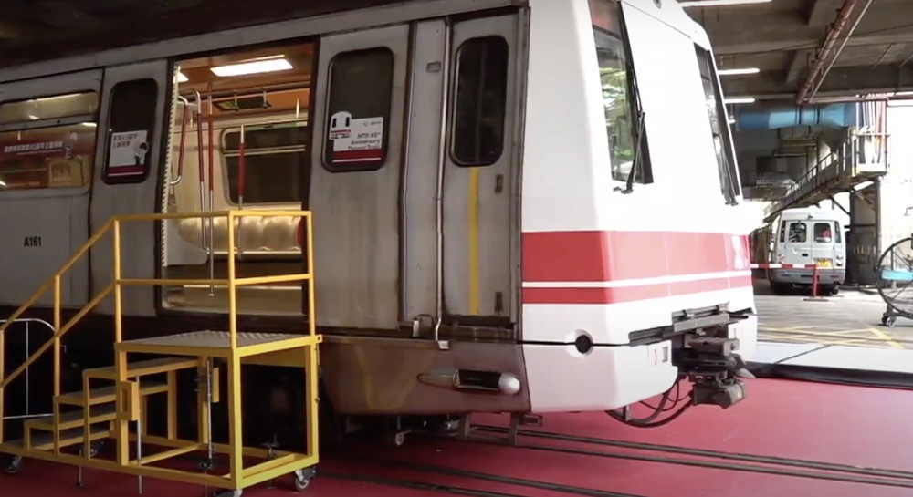 MTR launches replica themed train, featuring white front end and 'ball ball handrails' in those days