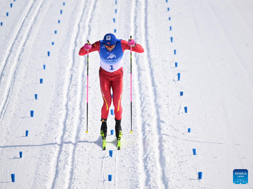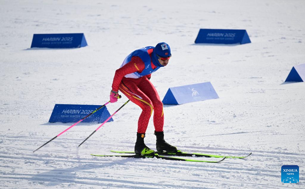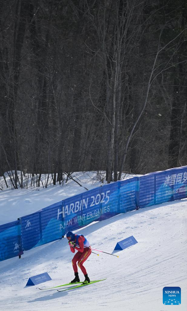 Li Minglin of China competes during the men's sprint classic qualification match of the cross-country skiing event at the 9th Asian Winter Games in Yabuli, northeast China's Heilongjiang Province, Feb. 8, 2025. (Xinhua)