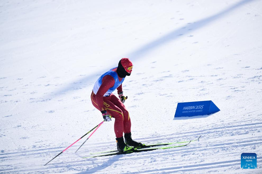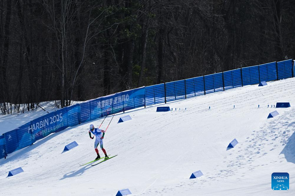 A skier competes during the men's sprint classic qualification match of the cross-country skiing event at the 9th Asian Winter Games in Yabuli, northeast China's Heilongjiang Province, Feb. 8, 2025. (Xinhua)