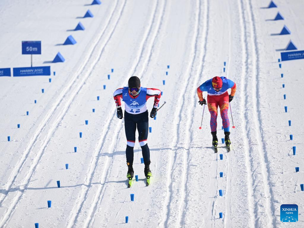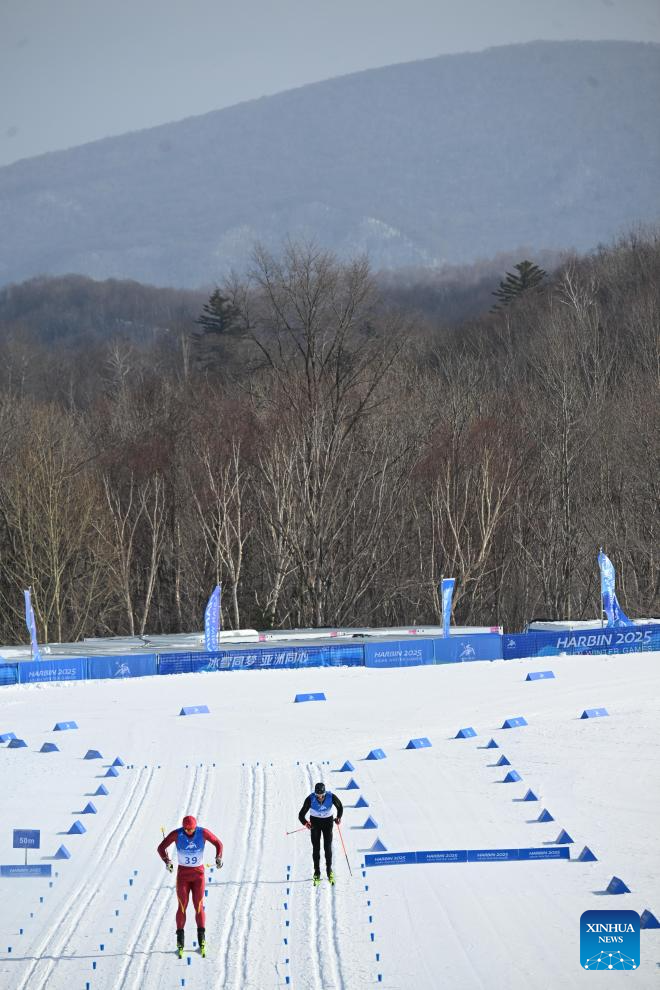 Skiers compete during the men's sprint classic qualification match of the cross-country skiing event at the 9th Asian Winter Games in Yabuli, northeast China's Heilongjiang Province, Feb. 8, 2025. (Xinhua)