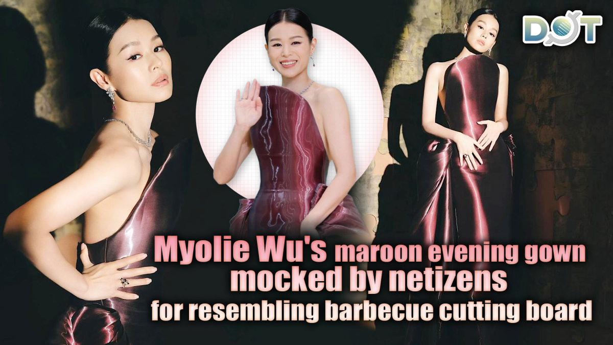 Short clips of Myolie Wu attending the event were shared on social media, where she was seen wearing a uniquely tailored maroon evening gown. The design of the dress sparked considerable discussion, leading some netizens to humorously create memes, likening the chest design of her dress to a cutting board used in barbecue shops: "The dress is a cutting board, Myolie is the barbecue," "Looks like a cutting board blocking the chest," "Instantly turned into barbecue meat," "Why wear this panel on her chest? It's too tacky," and "No aesthetic, it looks like a piece of char siu on her chest."