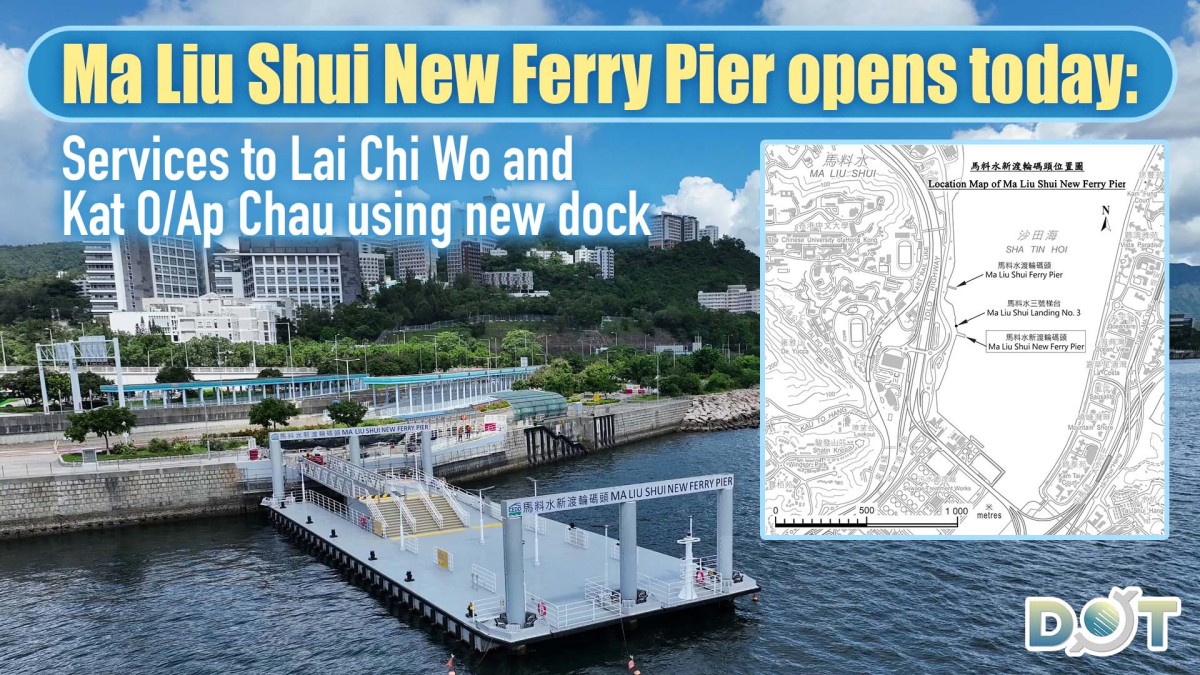 The new pier, a project under the Pier Improvement Programme (PIP), is located next to Ma Liu Shui Landing No. 3 on Science Park Road in Sha Tin (see location map). It provides berths for local sightseeing vessels and kaito ferries for passenger boarding and alighting. Two regular kaito ferry service routes, namely Ma Liu Shui - Lai Chi Wo and Ma Liu Shui - Kat O/Ap Chau, currently using Landing No. 3 for boarding and alighting, will switch to the new pier starting this Saturday (Sept. 13). The other two regular kaito ferry service routes, Ma Liu Shui - Tap Mun and Ma Liu Shui - Tung Ping Chau, will continue to use Ma Liu Shui Ferry Pier.