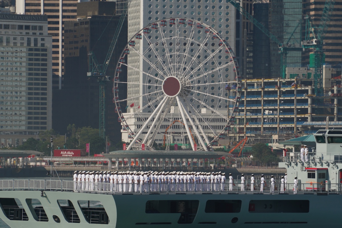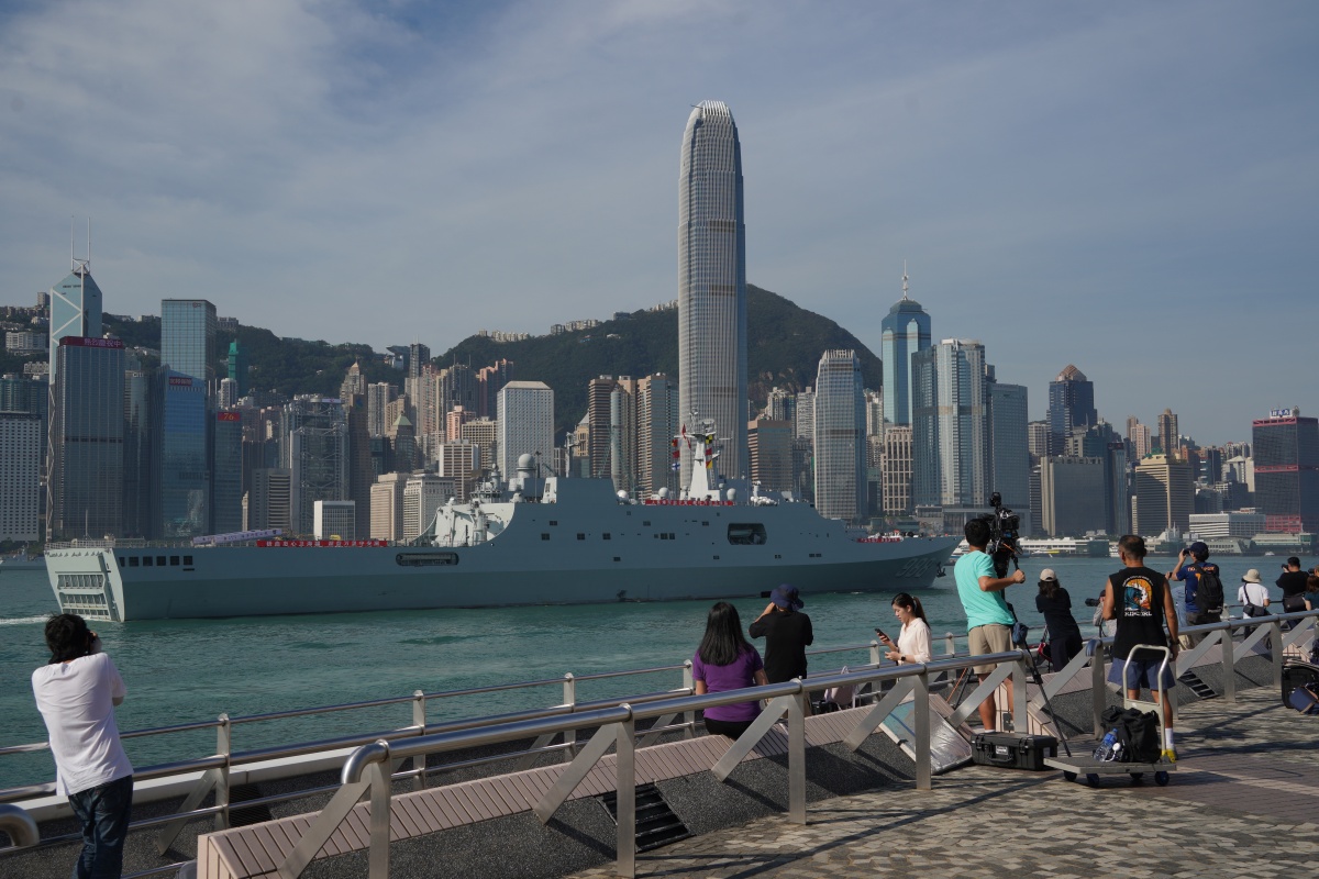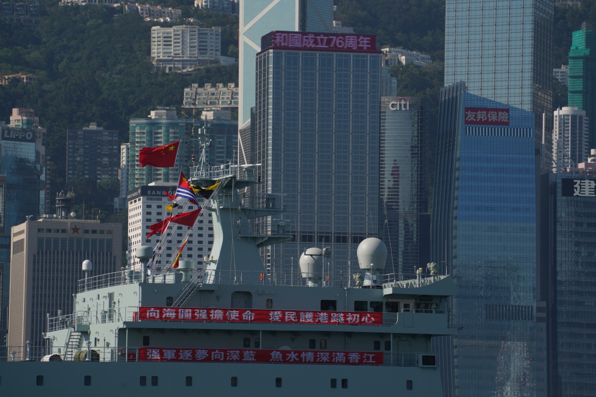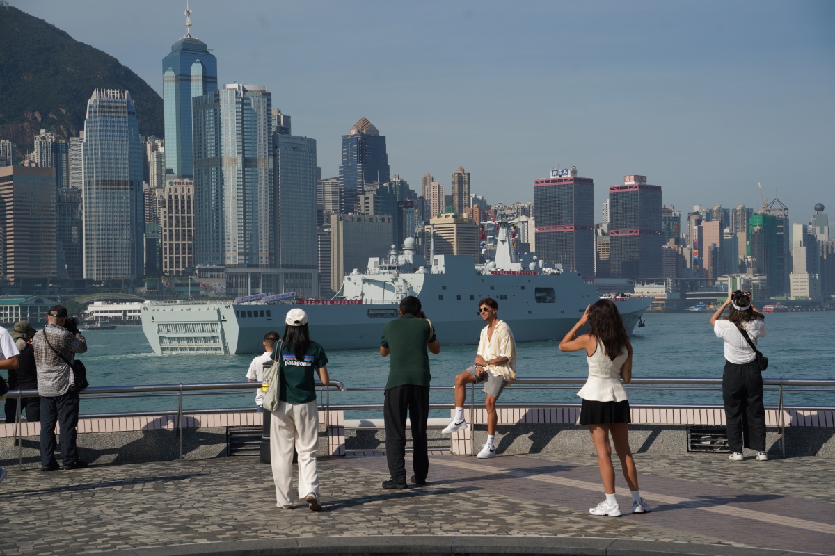 On the morning of Sept. 30, the People's Liberation Army (PLA) Navy ships "Qi Jiguang" and "Yimengshan" entered Hong Kong waters. Upon arrival, they were guided by local marine police vessels and the PLA HK garrison's guided-missile frigate Suqian, en route to the Ngong Shuen Chau Naval Base. The two ships are set to host open-ship events, inviting the public aboard for tours.