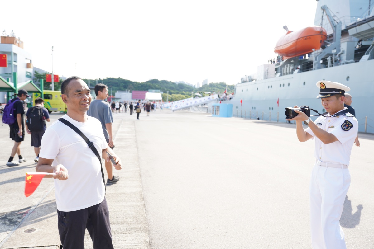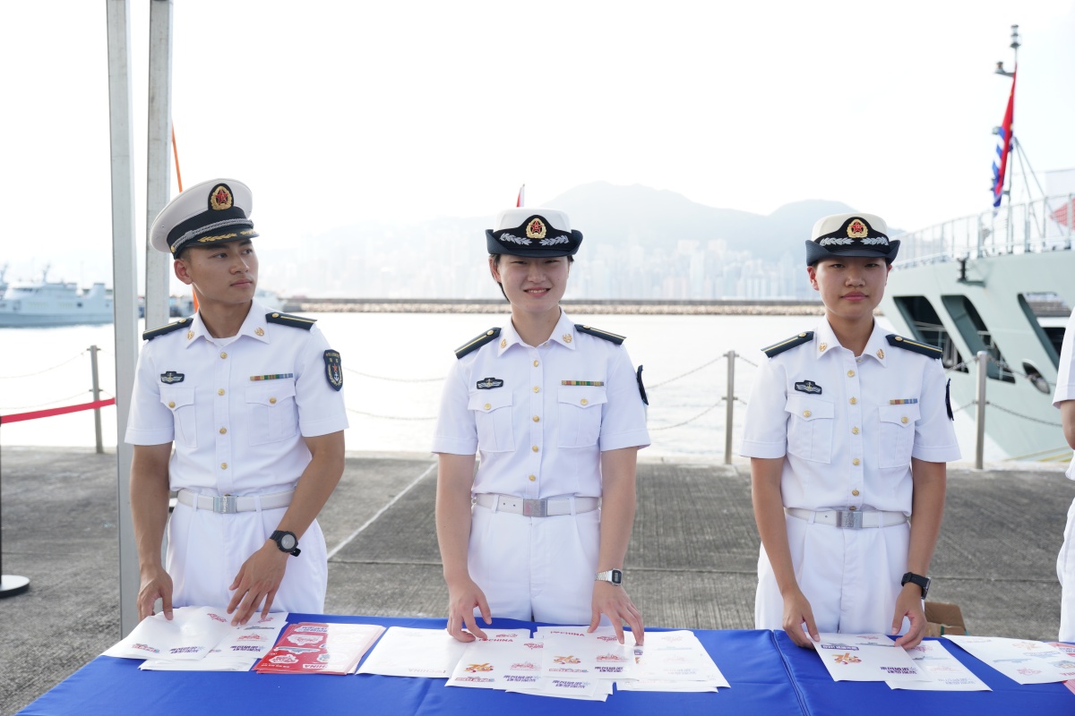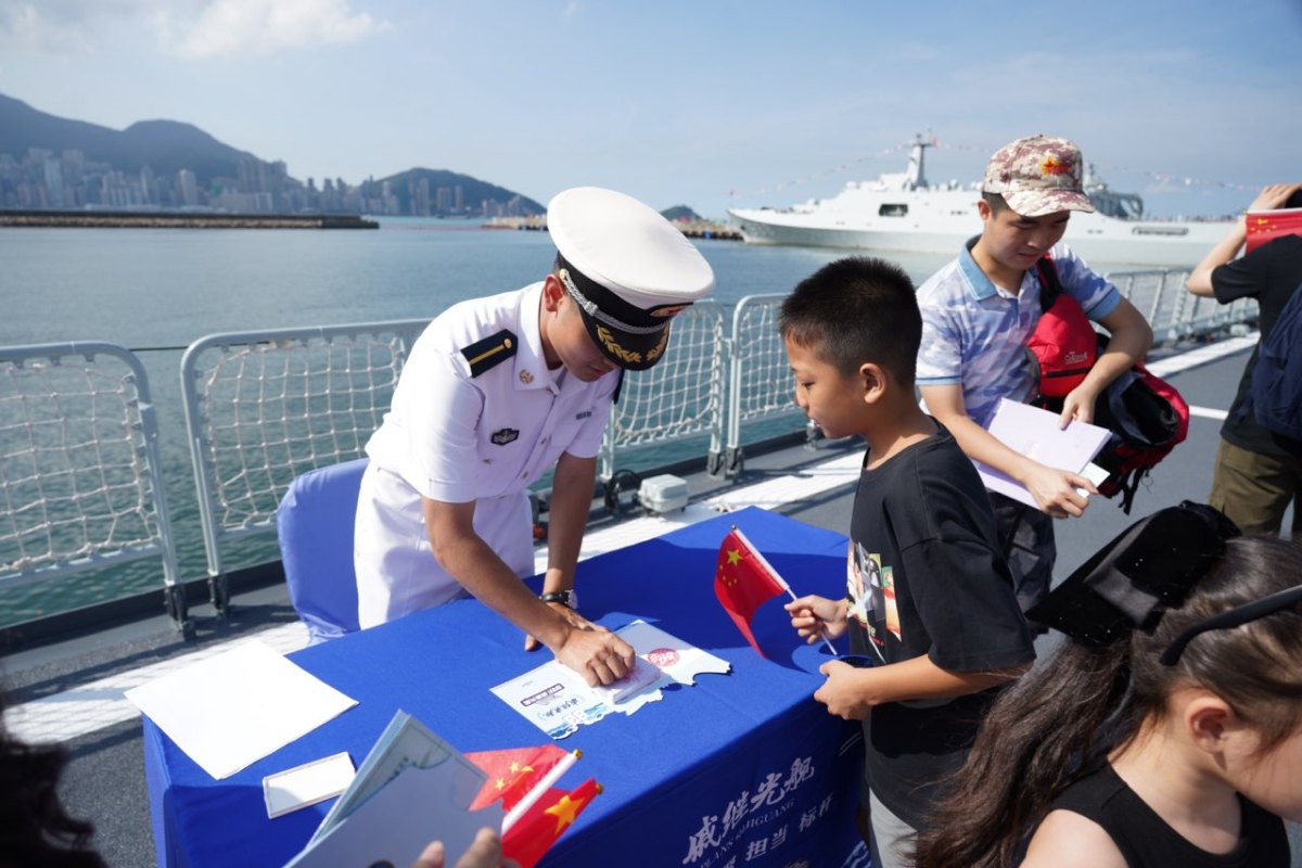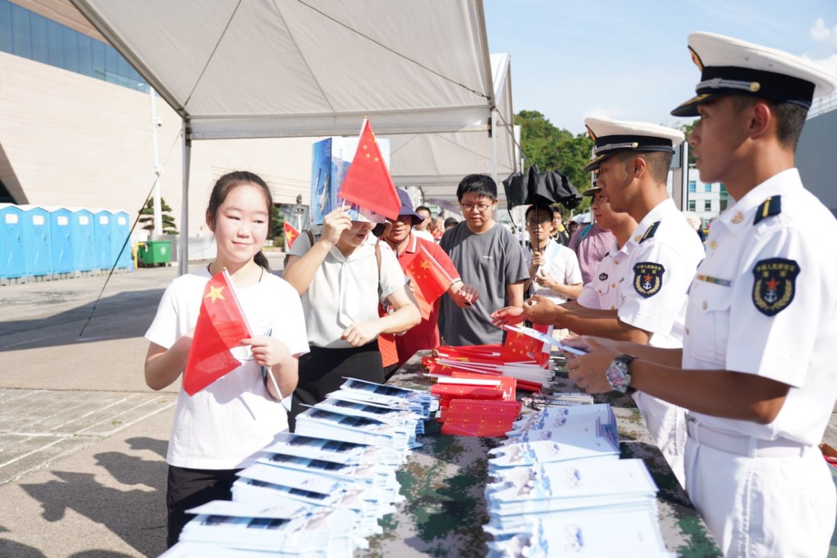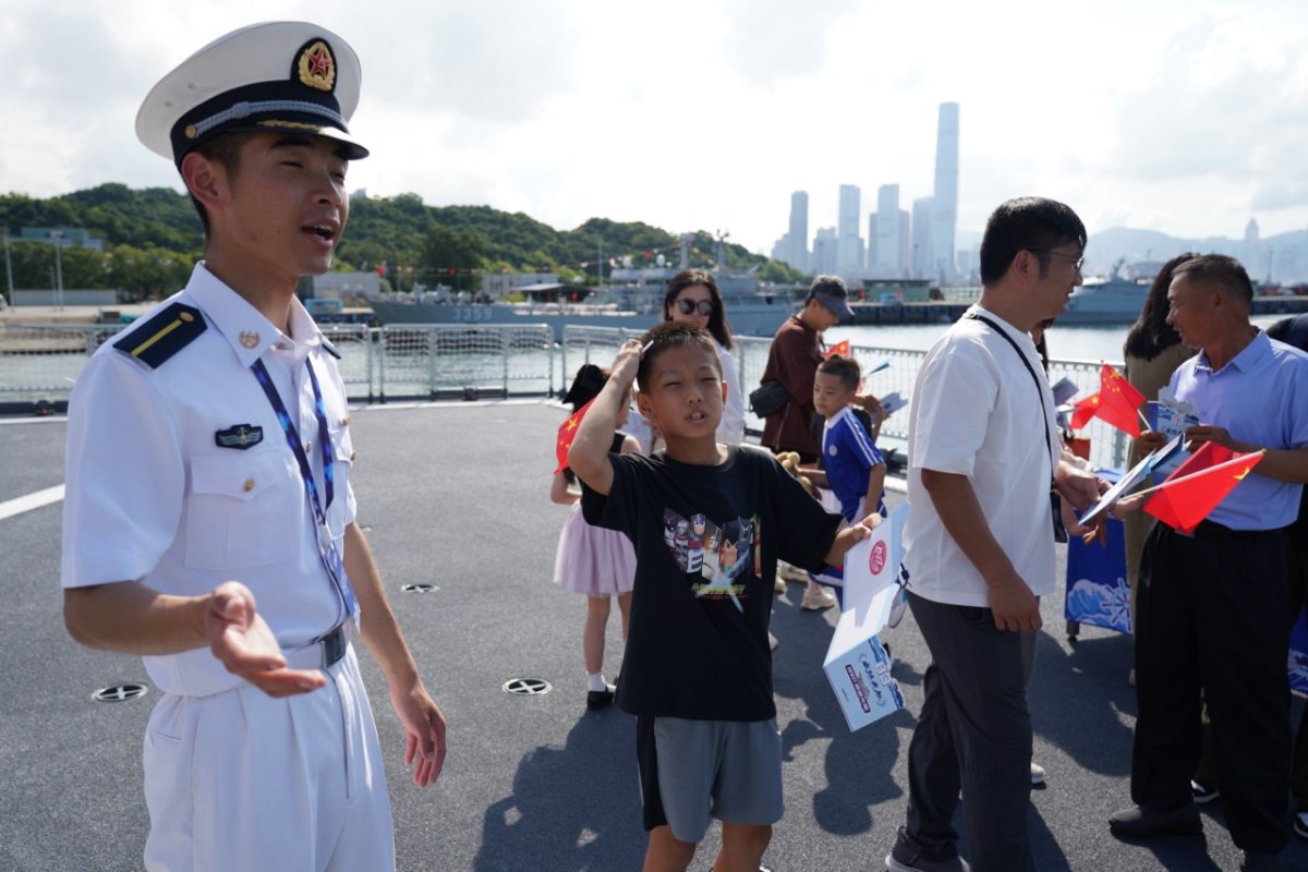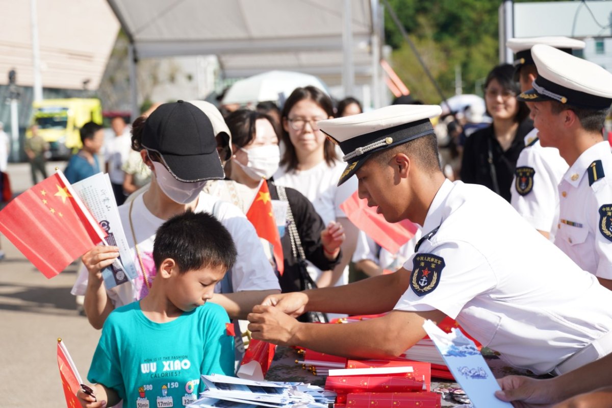 The 83-ship formation, composed of the Navy's Qi Jiguang and Yimengshan vessels, set sail on September 26 from a military port and a civilian port in Dalian, carrying over 1,200 naval trainees and personnel. Today (October 1) and tomorrow (October 2), the military camp is hosting open ship activities at Stonecutters Island, welcoming citizens on board for visits.