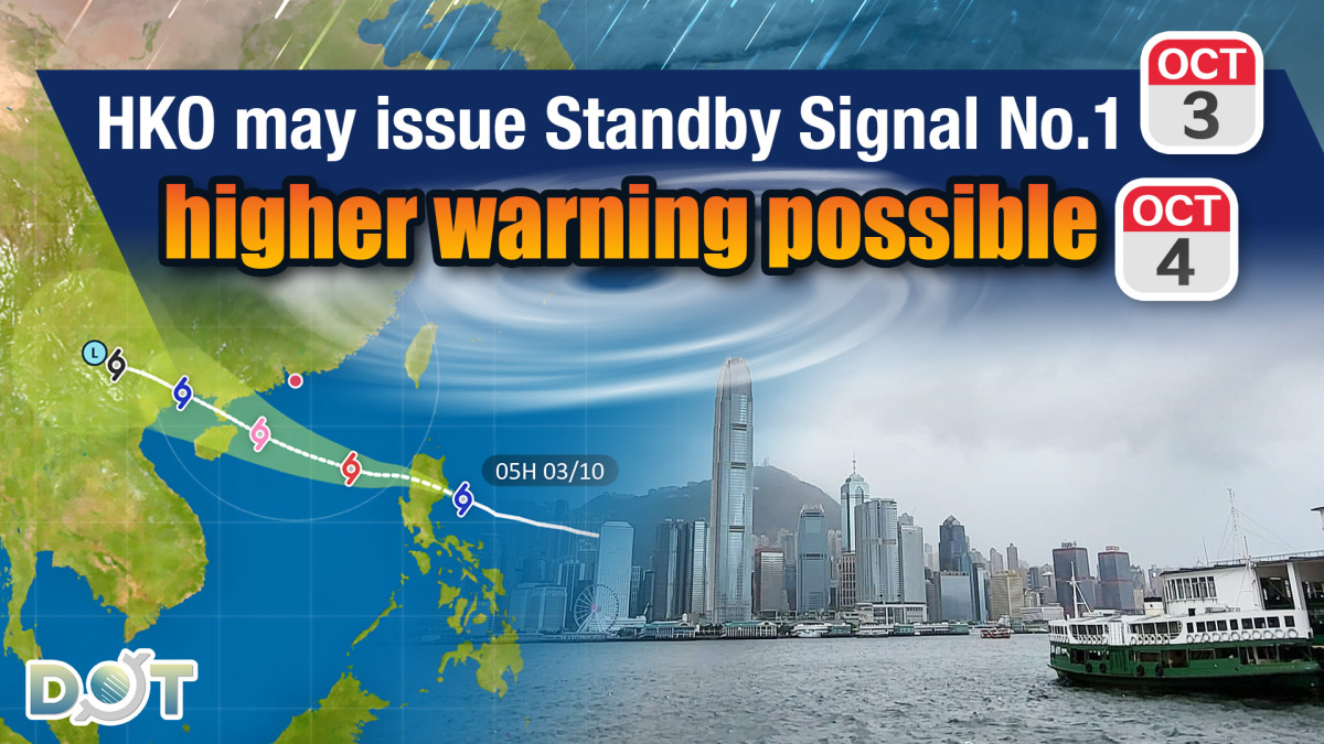 The Hong Kong Observatory (HKO) announced today (Oct. 3) that tropical cyclone "Matmo" is expected to cross Luzon and enter within 800 kilometers of HK later today. The HKO is considering issuing the Standby Signal No. 1 tonight.