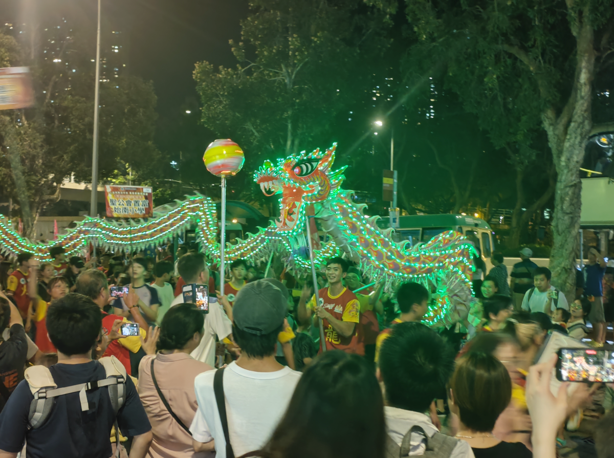 To celebrate the Mid-Autumn Festival and National Day holiday, the Southern District Community Association hosted the "Aberdeen Fire Dragon Festival" on Oct. 6 in Aberdeen, Hong Kong. The event attracted a large crowd of spectators.