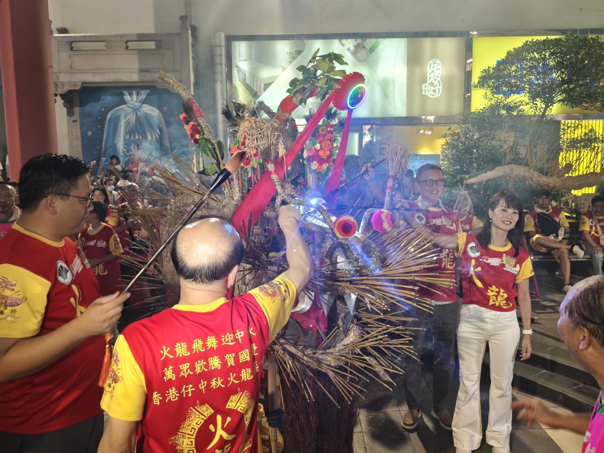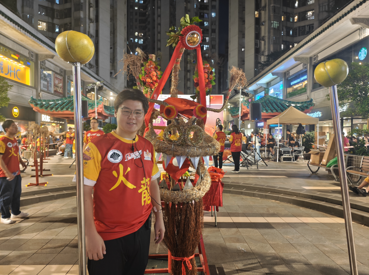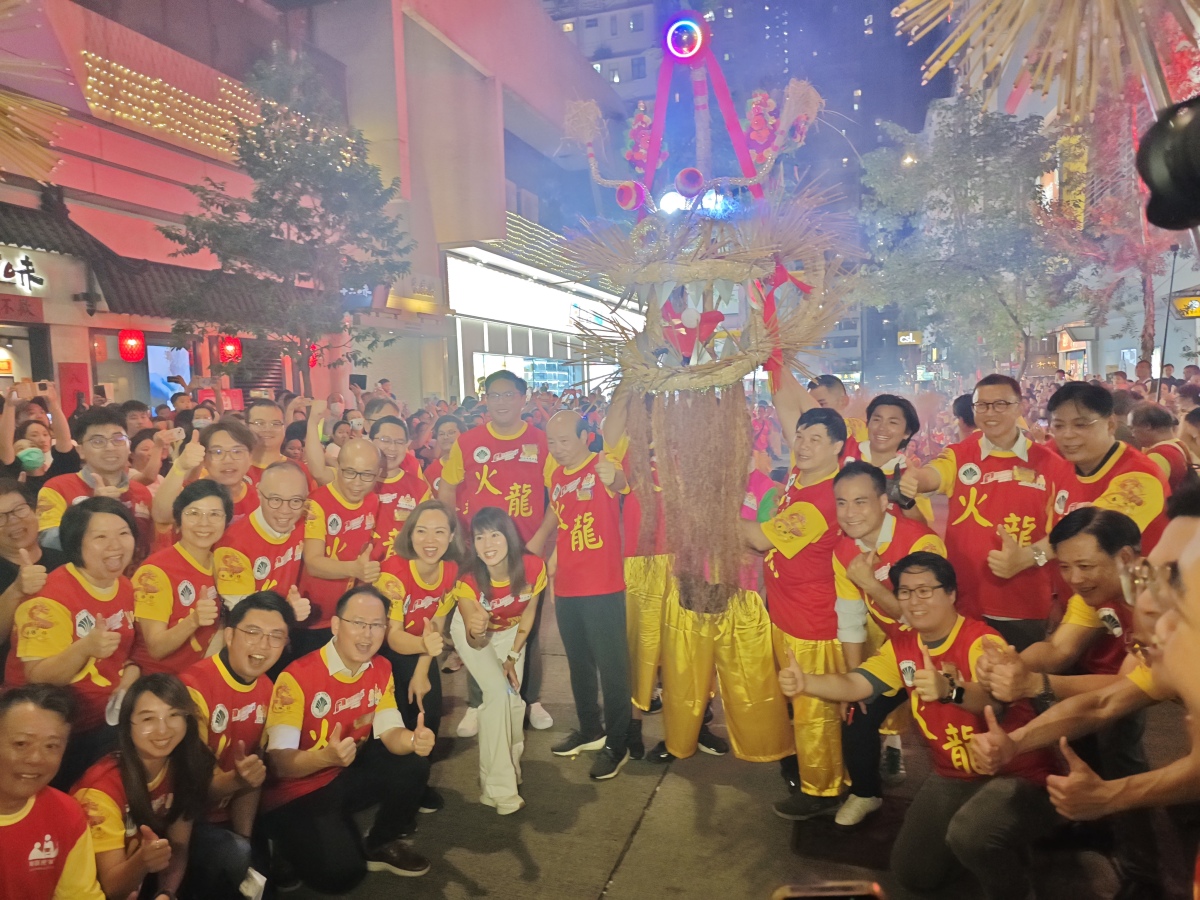 Southern District Councilor Luke Cheung participated as part of the dragon dance team throughout the event. However, he regretfully noted that, as the organizer and team leader, he did not have the chance to experience dancing the fire dragon himself. He pointed out that this year's event saw the participation of more schools, increasing from two last year to five, with nearly 500 participants in total. Reflecting on the event's growth, he shared how it evolved from a small children's lion dance team in its early days to today's collaboration with multiple schools. He hopes that more schools will join next year to continue passing on this traditional cultural heritage through the dragon dance.