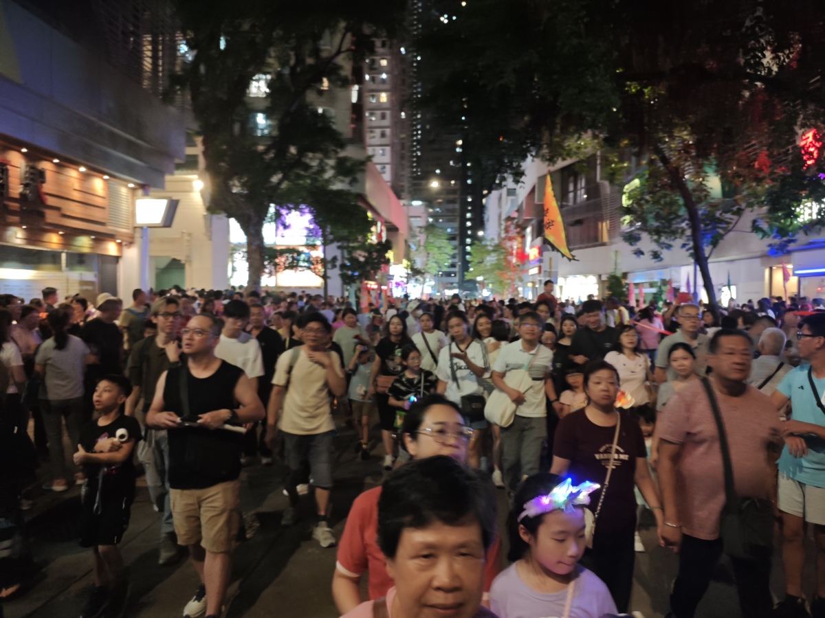 At 8:00 p.m., the dragon dance team held a kickoff ceremony at Aberdeen Centre Square. After the officiating guests performed the traditional rituals of "dotting the eyes," the dragon dance team and Yingge dance team officially set off at 8:30 p.m. The fire dragon parade was divided into two segments: starting from the square to Chengtu Road, and then continuing on Wah Fu Road to Waterfall Bay by truck.