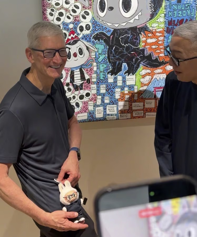 Apple CEO Tim Cook visited Shanghai on October 13, starting his trip by attending THE MONSTERS 10th Anniversary Global Tour. He met with Labubu designer Kasing Lung and Pop Mart founder Wang Ning. Lung presented Tim Cook with a specially crafted Labubu doll, dressed in black, white shoes, and glasses, resembling the designer himself, and holding an orange iPhone 17 Pro in its left hand.