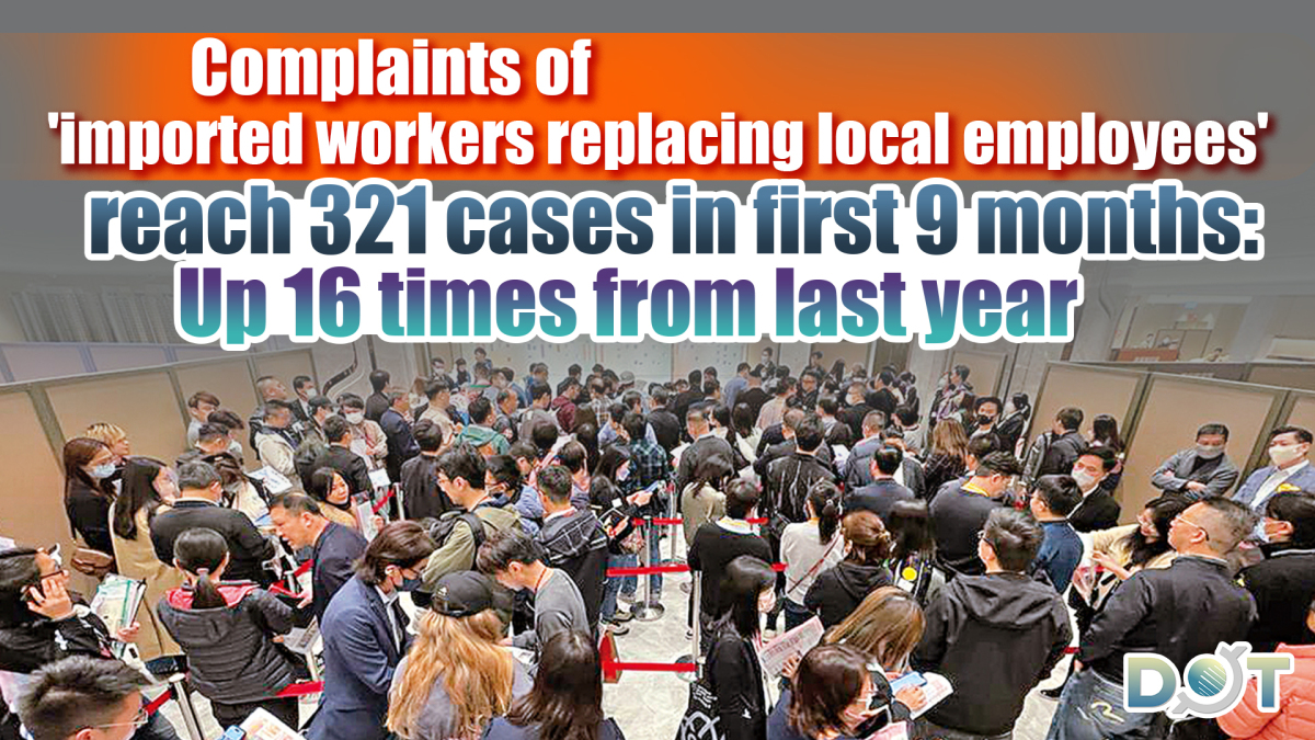 Sun explained that the Labor Department received 1, 19, and 321 complaints in 2023, 2024, and the first nine months of this year, respectively, regarding suspected replacement of local workers by foreign labor, indicating the significant surge this year. The department investigates all complaints, including conducting inspections and gathering evidence at the workplaces where imported labor is employed. They also verify in detail with employers and employees whether the number of local staff decreased after the arrival of imported workers, the reasons for any reduction, and whether the employer conducted local recruitment to fill vacancies left by departed local employees.