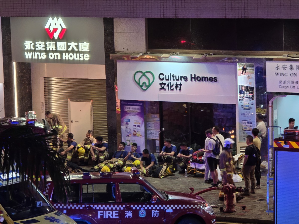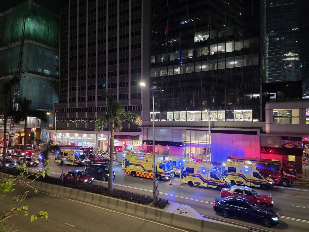 A three-alarm fire broke out at Chinachem Tower, located at 34-47 Connaught Road Central, yesterday afternoon (Oct. 18), injuring four individuals—three men and one woman aged between 23 and 65. According to the Government News Service in the early hours of today (Oct. 19), a 23-year-old man surnamed Ngai and a 55-year-old man surnamed Lam are in critical condition, while a 65-year-old man surnamed Chung and a 35-year-old woman surnamed Yeung are in stable condition.