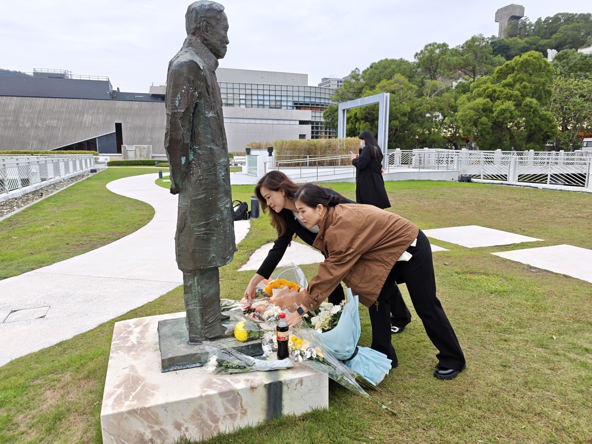 Nearby, a bronze statue of Professor Yang, unveiled in 2007 to mark his Nobel Prize's 50th anniversary and his 85th birthday, stands in the Lady Shaw Building's rooftop garden, adorned with flowers. Ms. Cao Feifeng, a visiting scholar from Zhejiang University of Technology, brought flowers from a local market, expressing admiration for Yang's decision to return to China during challenging times, noting it as an inspiration for overseas scholars.