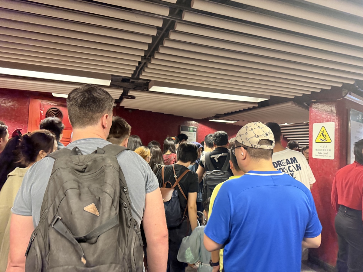 Around 7:10 p.m., DotDotNews reporters on the ground observed an overwhelming crowd near the Central MTR Station's D2 exit, which serves as a primary access point to Lan Kwai Fong.