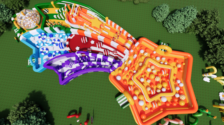 Giant dreamy inflatable park with two themed areas, open day and night