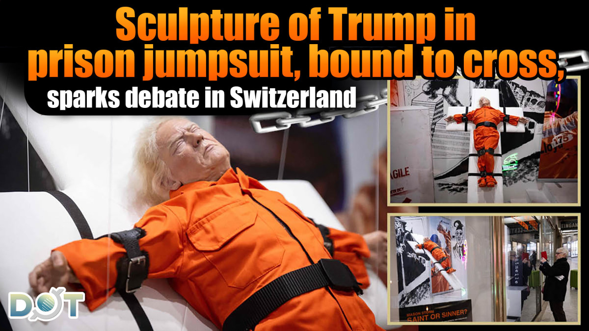A sculpture of US President Donald Trump in an orange prison jumpsuit, bound to a cross, sparked heated debate after its unveiling in Switzerland last Saturday (Nov. 1).
