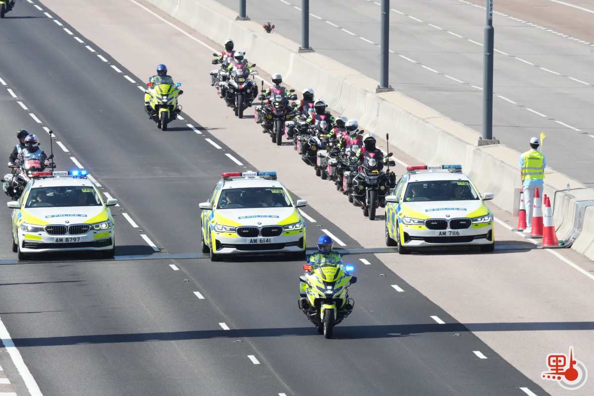 The cycling team is expected to enter Hong Kong via the Hong Kong-Zhuhai-Macao Bridge at 10:20 AM, travel along the North Lantau Highway, pass through the Hong Kong Disneyland Resort area, then turn back and leave Hong Kong at 11:50 AM.