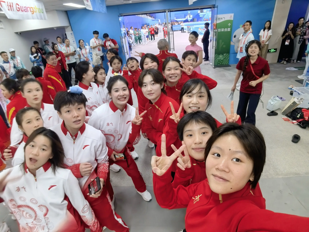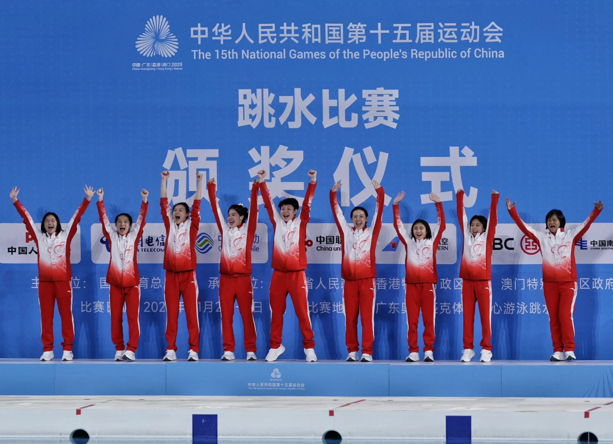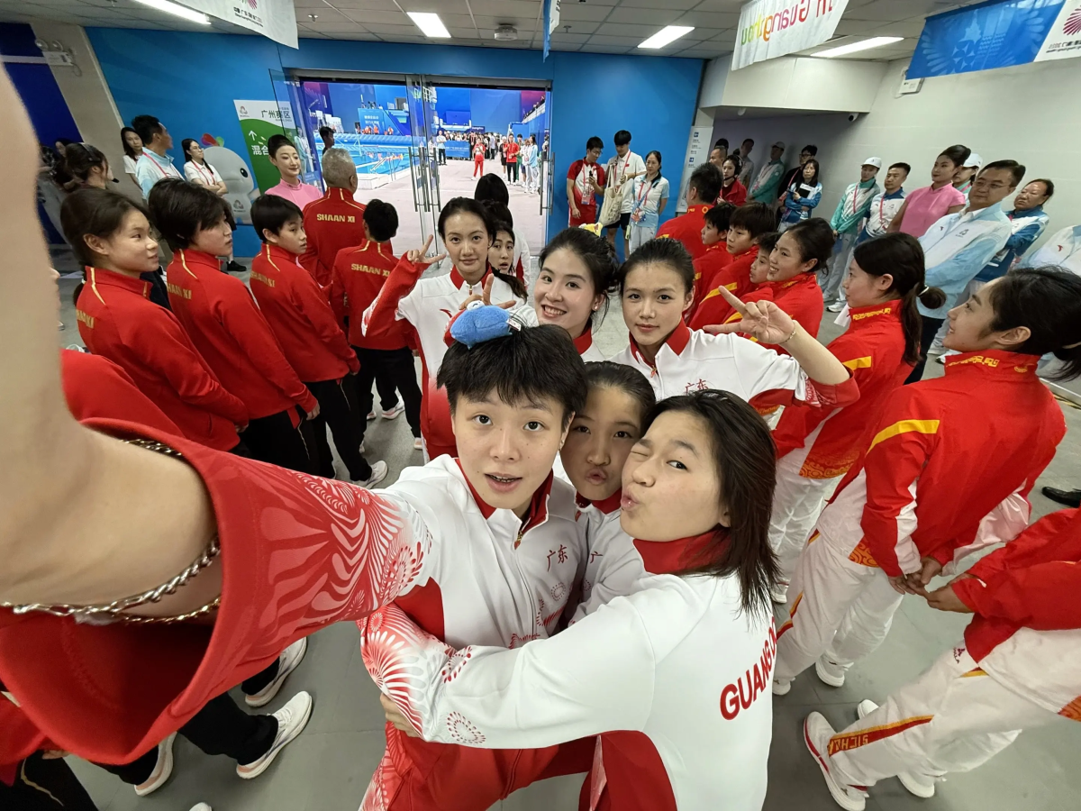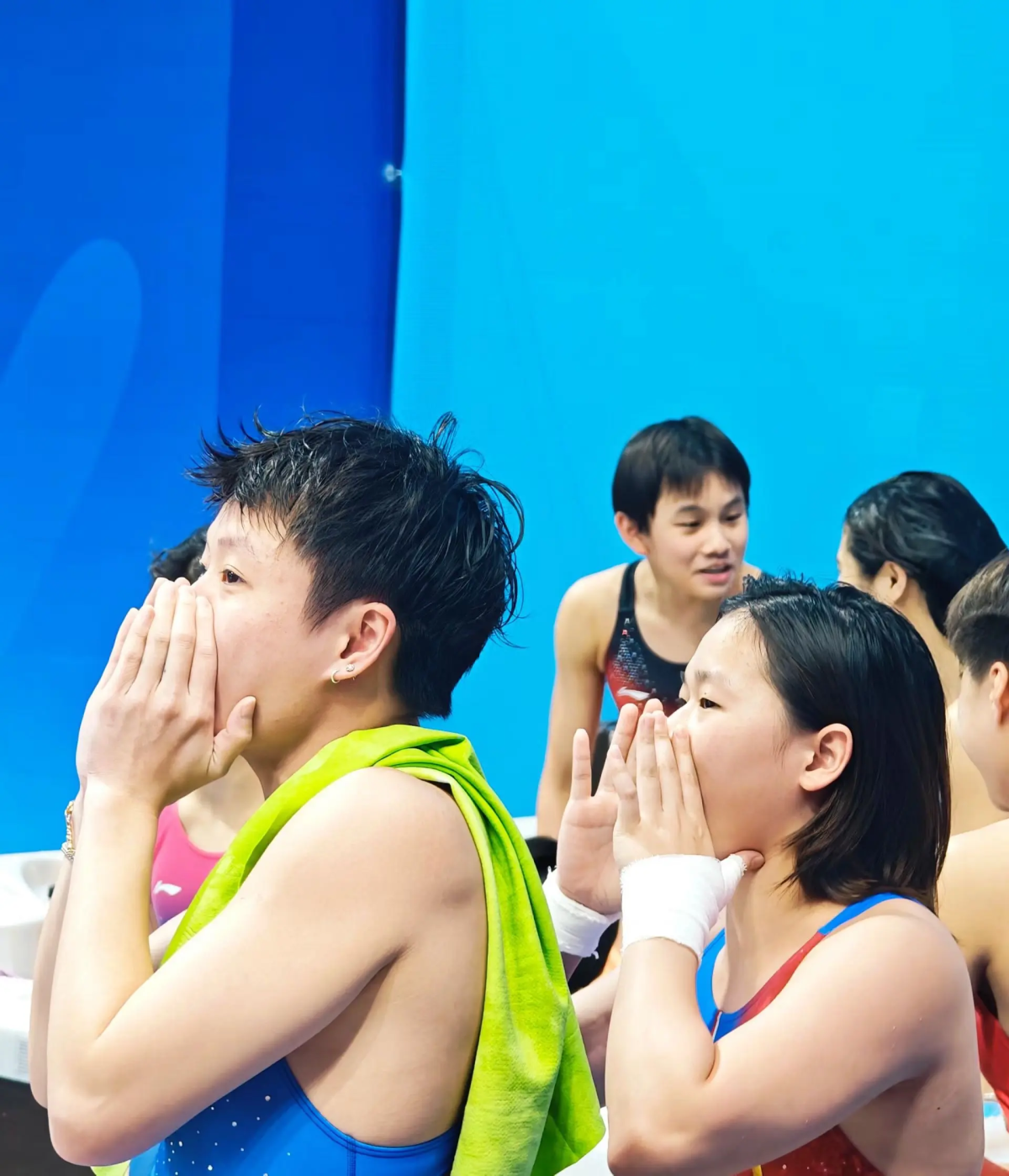 This year's National Games marks Quan Hongchan's return from injury. In the competition, Quan and her partner Wang Weiying secured first place in the women's synchronized 10-meter platform diving and fifth place in the women's 10-meter platform diving. Recently, Quan Hongchan shared several photos with her teammates on social media, captioning: "Another four years, we are amazing!"