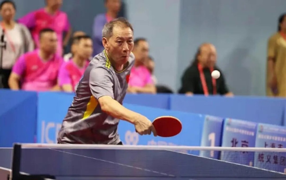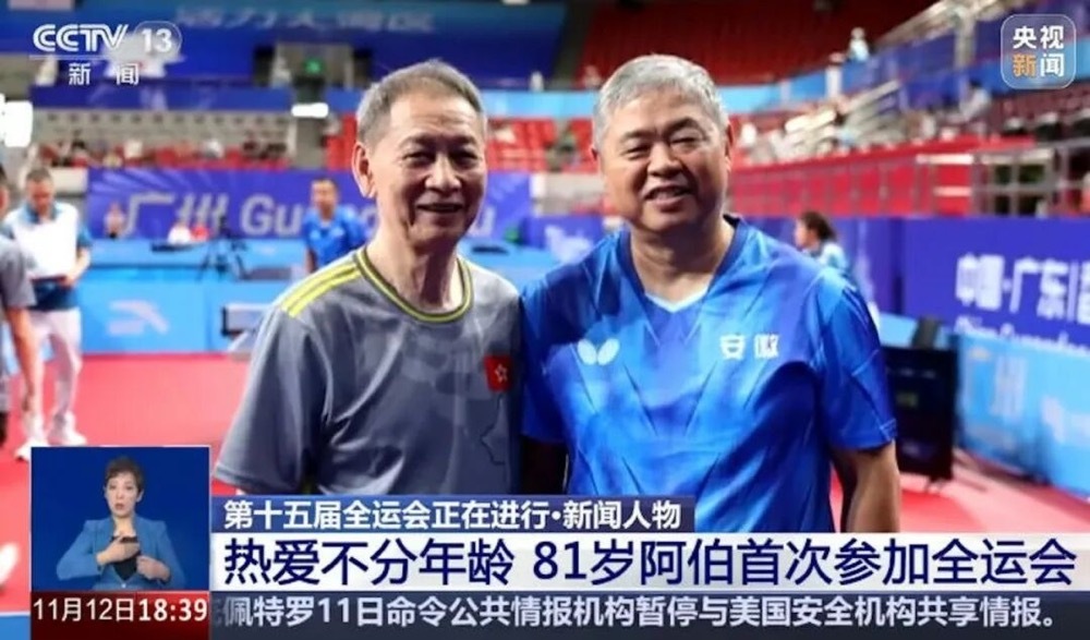 The man is Cheung Yiu-chiu, who represented HK in the masst able tennis event at the 15th National Games. At 81 years old, Cheung is the oldest athlete in this year's Games. His teammates affectionately call him "Brother Chiu," and this marks his debut at the National Games.