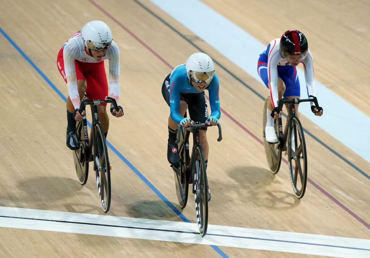 The Hong Kong cycling team continued its stellar run at the 15th National Games, with star rider Ceci Lee partnering Chloe Leung to win the gold medal in the women's Madison event at the Hong Kong Velodrome in Tseung Kwan O today (Nov. 16).