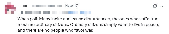 In the comment section, some netizens also expressed their agreement with Takamine's words. A netizen said, "When politicians stir up trouble and cause disturbances, it is ordinary citizens who suffer the most. Ordinary citizens simply want to live in peace; no one likes war."