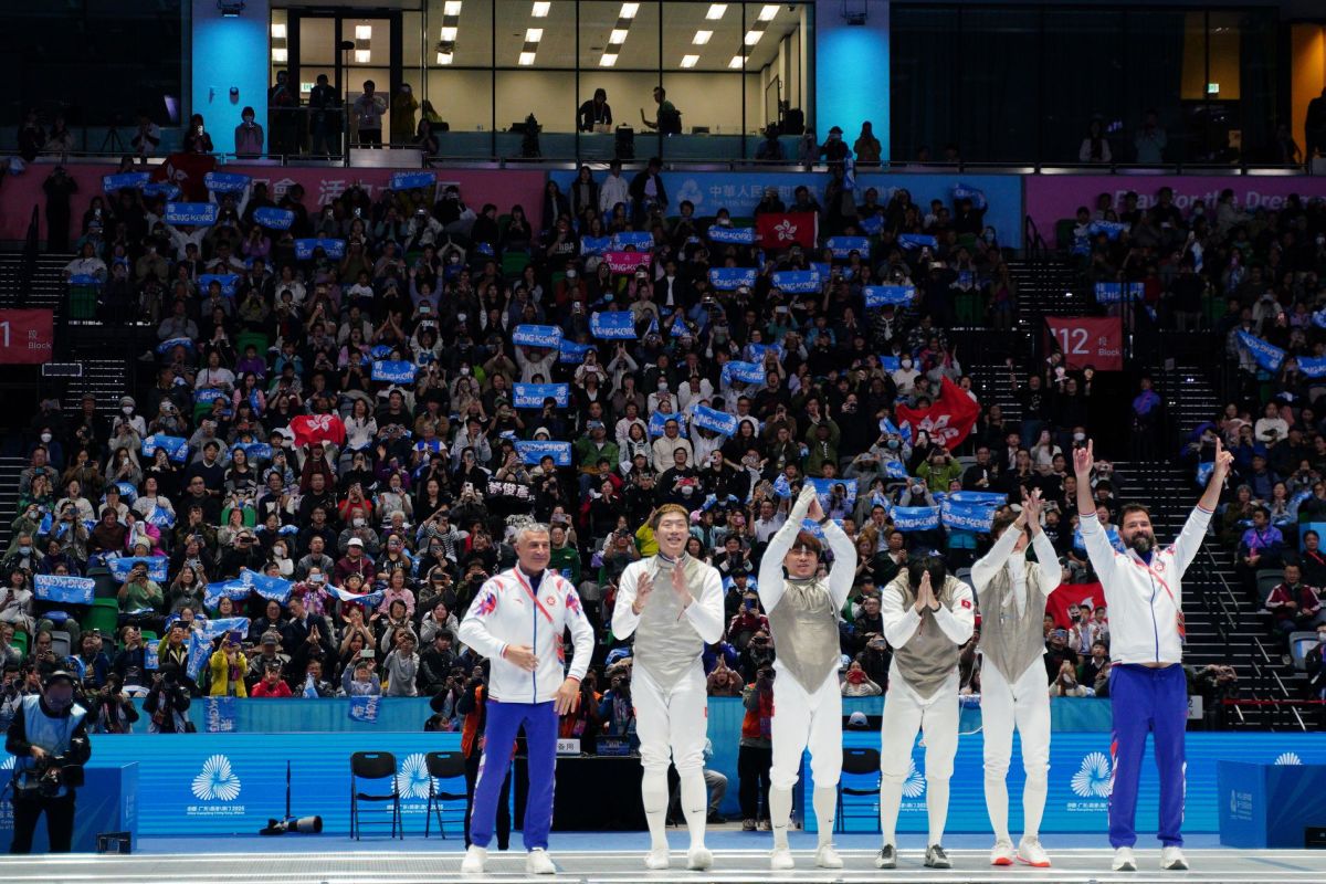 On November 19, the Hong Kong men's foil team, consisting ofEdgar Cheung, RyanChoi, Leung Chin-yu, and Lawrence Ng, won the gold medal by defeating the Fujian team 45-34 in the final, marking their first gold in the men's foil team event at the National Games, making history.