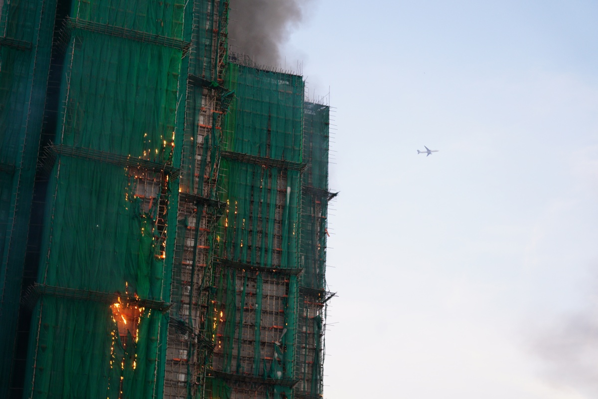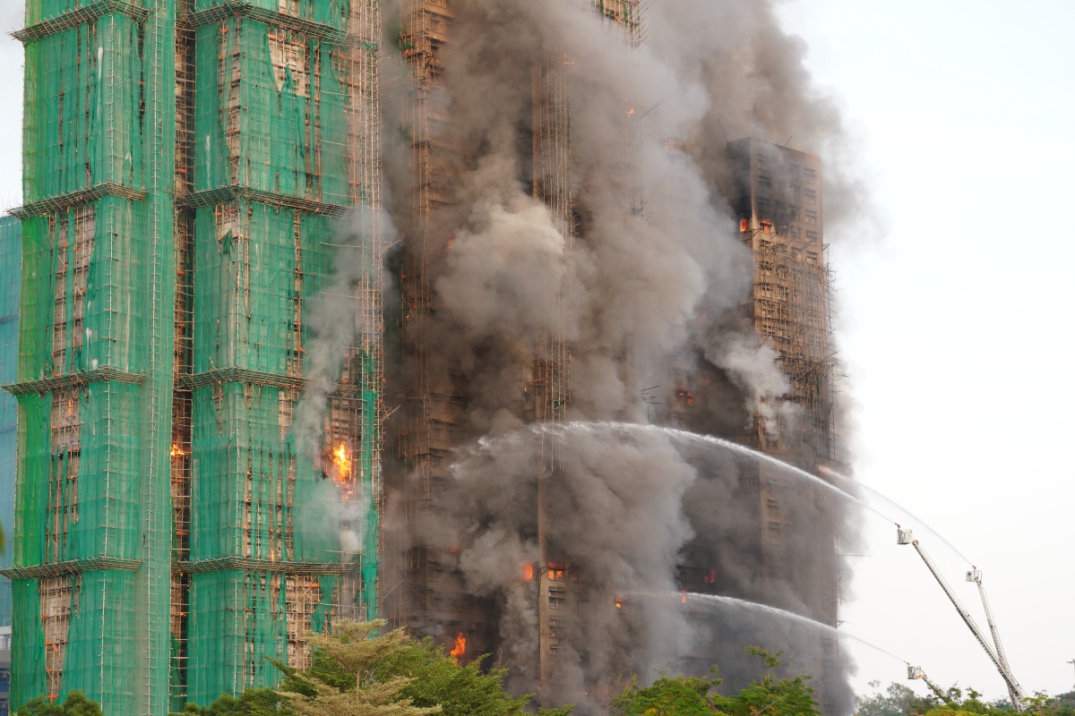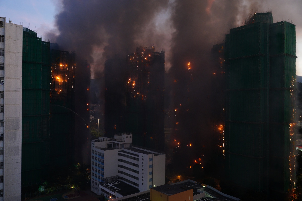 A fire broke out at Wang Fuk Court in Tai Po at 2:51 pm today (Nov. 26), upgraded to a No. 3 fire at 3:02 pm, and further escalated to No. 4 at 3:34 pm. Firefighters are currently engaged in firefighting efforts.