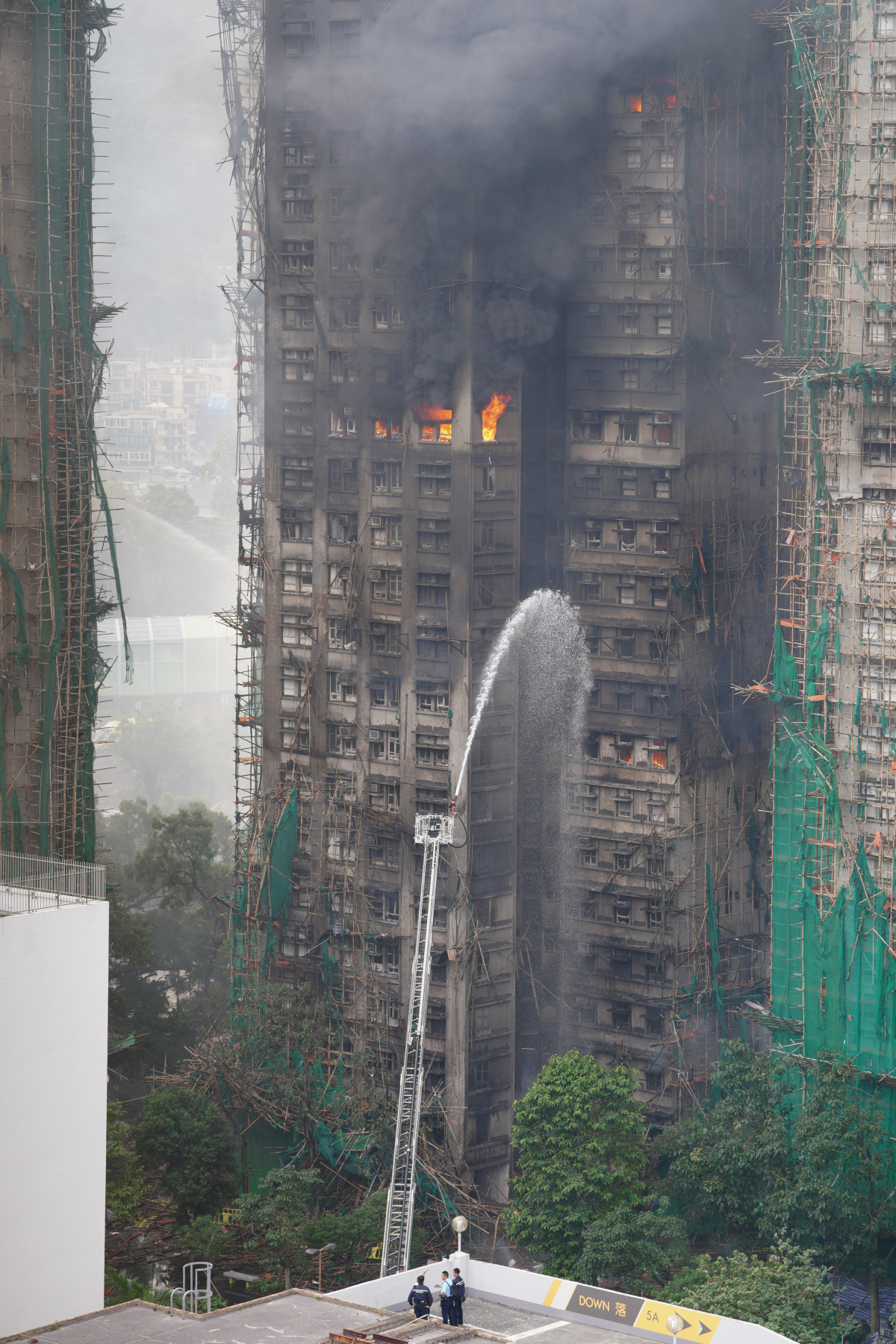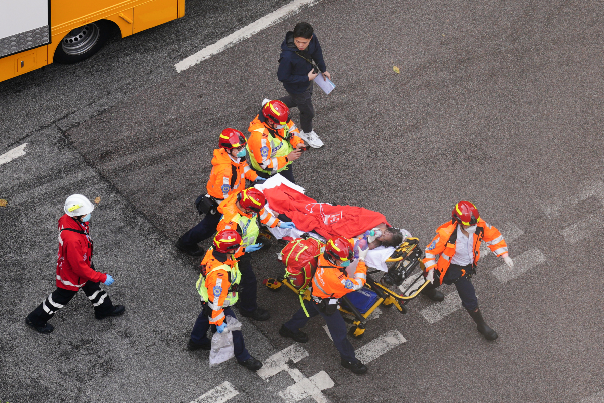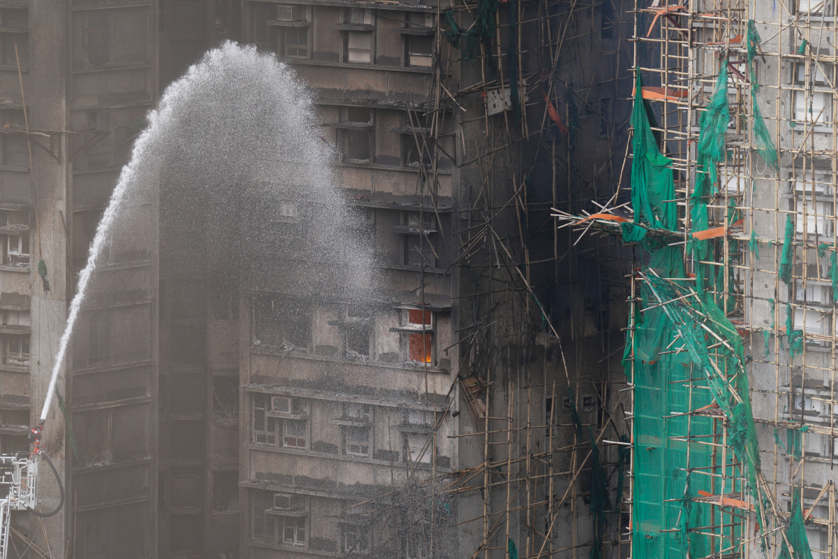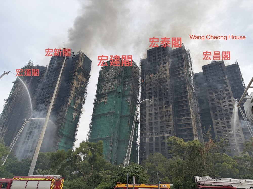 No. 5 alarm fire at Wang Fuk Court in Tai Po yesterday (Nov. 26), resulting in multiple casualties. Firefighters are still engaged in firefighting operations. The death toll has risen to 44, with 45 injured individuals in critical condition, and 7 firefighters also reported injured. The seven buildings that caught fire were undergoing scaffolding work, and it is suspected that the external construction materials did not meet fire safety standards. Three responsible individuals from the servicing company have been arrested.