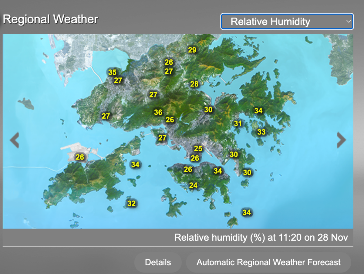 The HKO forecasts that tomorrow will remain mostly sunny and dry, while relative humidity is expected to increase early next week, with more cloudy weather and a few rain patches.