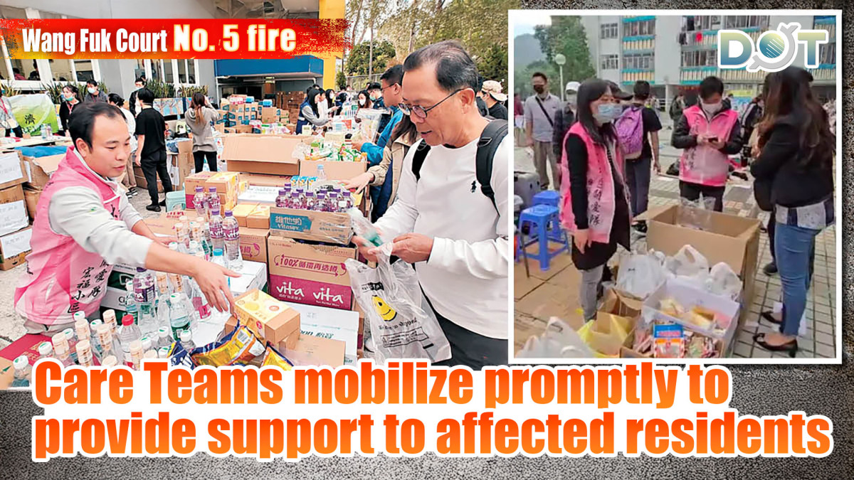Mui Siu-fung further noted that the Home Affairs Department initiated additional arrangements the night before, deploying Care Teams from Sha Tin District for support in distributing supplies and comforting residents. As of yesterday morning, Care Teams from the North District and Sha Tin District had also provided cross-district support, with at least 21 Care Teams participating in this effort.