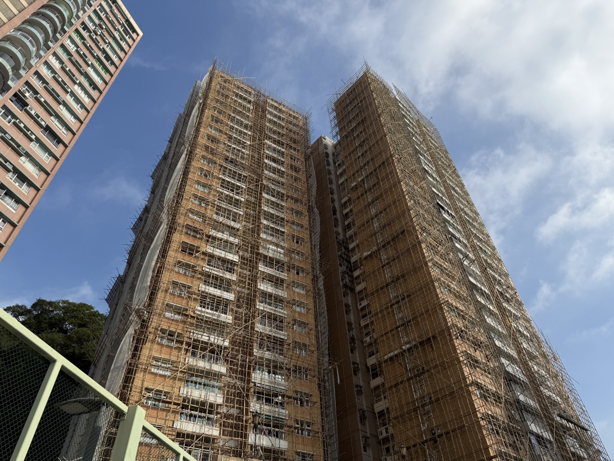 Mr. Wong, a Baguio Villa resident, informed DotDotNews yesterday that, following mandatory orders from the BD, removal of the scaffolding nets began yesterday morning. As of the afternoon, DotDotNews reporters observed that the previously fully-wrapped buildings had been "unveiled."