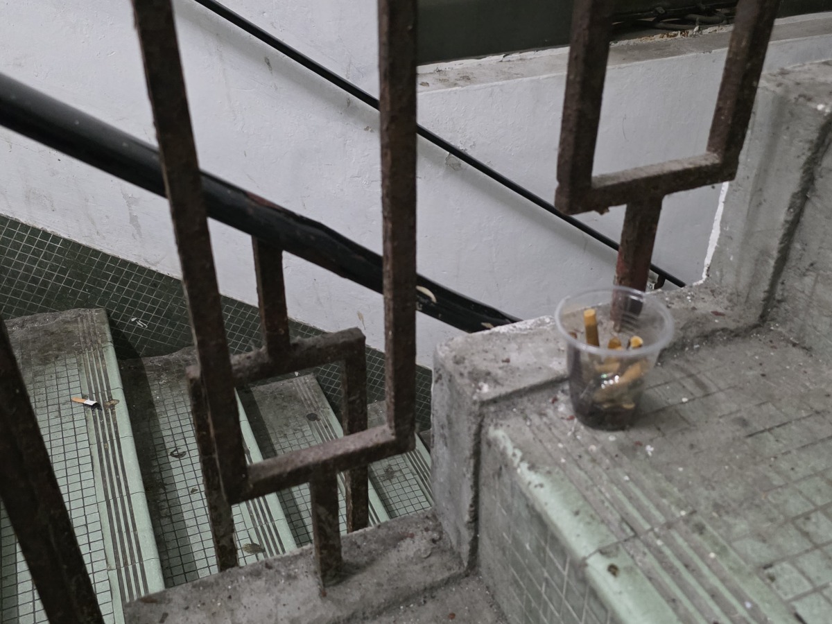 Additionally, the Kingland Apartments has two entrances, with the second located at 737-741C Nathan Road. Video evidence reveals several hotels on the 15th floor, with their double smoke doors left ajar. Moreover, multiple cigarette butts and debris cluttered the fire escape staircases on the ground floor, further narrowing the already tight spaces.