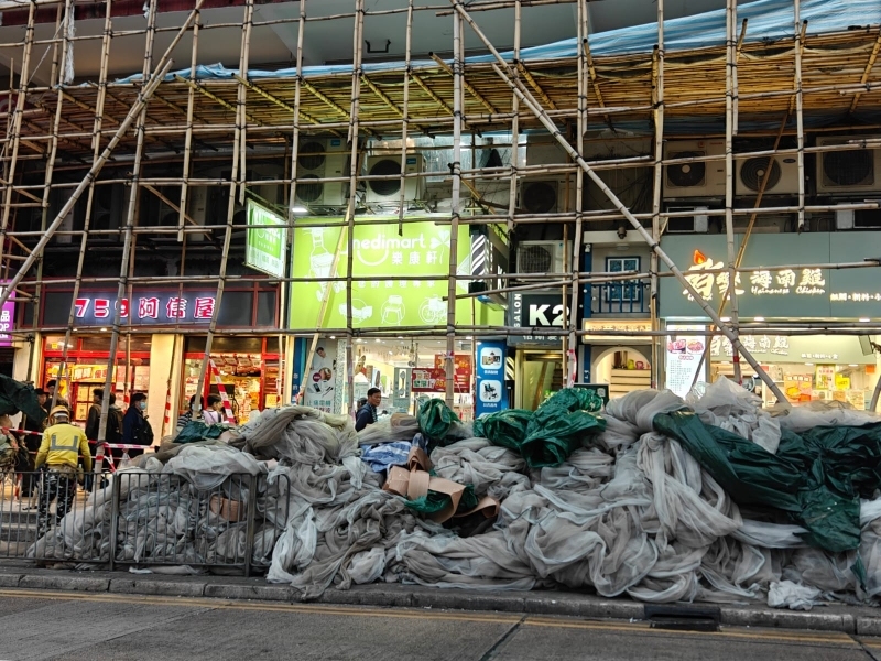 The Development Bureau declared on Dec. 3 that all scaffolding structures on public, private, and government buildings with ongoing major renovation works must be dismantled within three days.