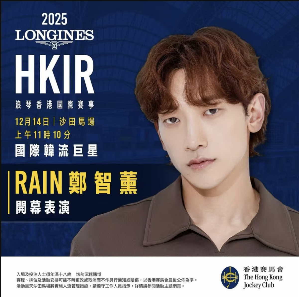 Hong Kong International Races (Dec. 10 & 14, 2025): Witness world-class equestrian competition at the Hong Kong International Races. The Longines International Jockeys' Championship (Dec.10 at Happy Valley Racecourse) and the Longines Hong Kong International Races (Dec. 14 at Sha Tin Racecourse) bring together top jockeys and horses from around the globe. K-pop sensation Rain will perform at the opening ceremony.