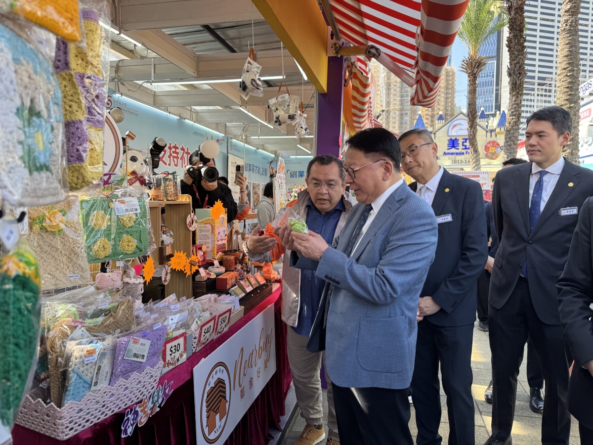 The 59th Hong Kong Brands and Products Expo, organized by the Chinese Manufacturers' Association of Hong Kong (CMA), commenced with an opening ceremony at Victoria Park in Causeway Bay at 10 am today (Dec. 15). Mr. Eric Chan, Chief Secretary for Administration, attended the ceremony, toured the exhibition grounds, engaged with exhibitors, and made purchases totaling HK$3,808 to express his support for small and medium-sized enterprises.