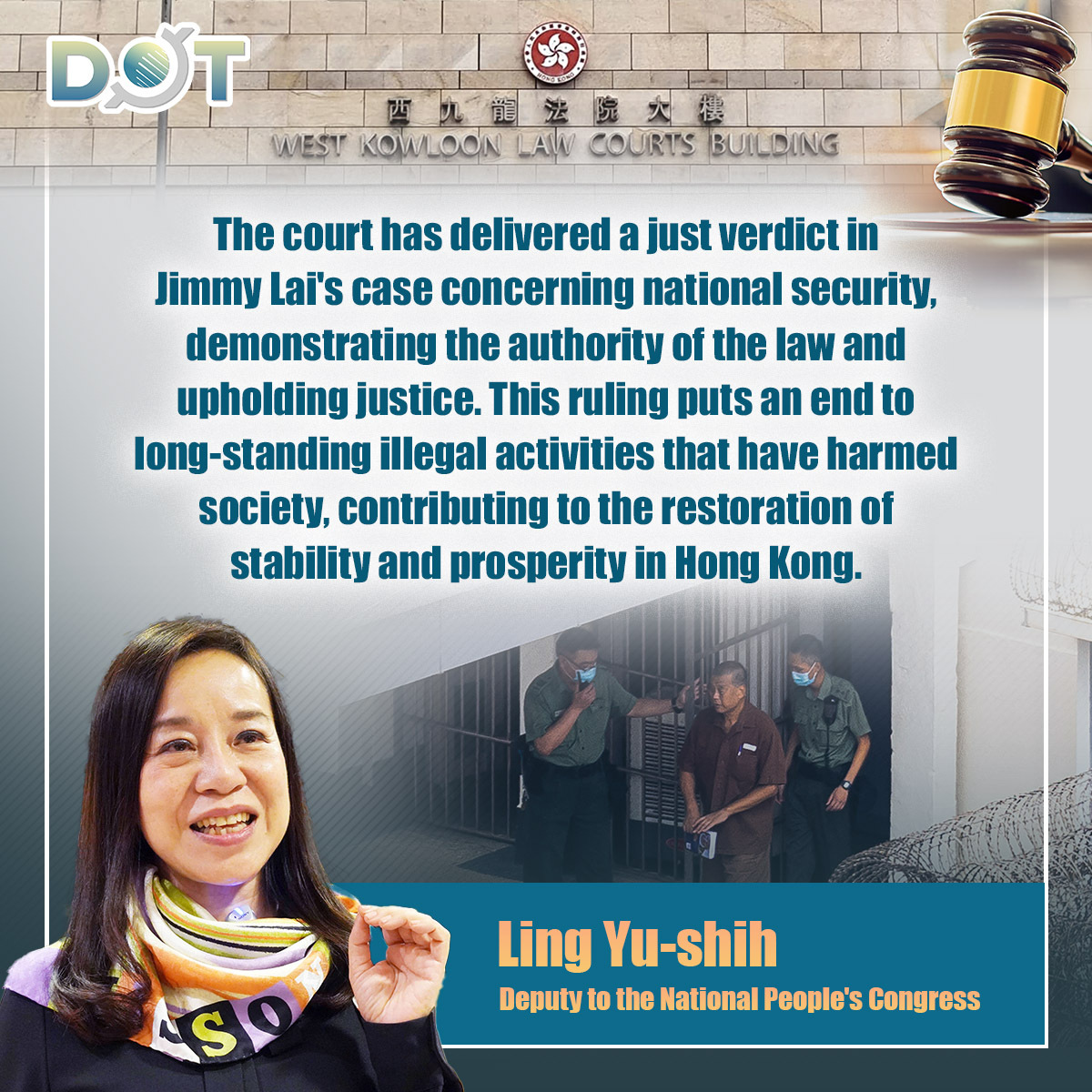 Second, it upholds justice in Hong Kong. Over the years, external forces and individuals seeking to destabilize Hong Kong engaged in rampant unlawful acts, creating an environment where public anger was often suppressed. With the implementation of the National Security Law and improvements to electoral systems, Hong Kong has undergone positive changes. This ruling marks a clear end to decades of unrest and represents a decisive step toward restoring social righteousness.