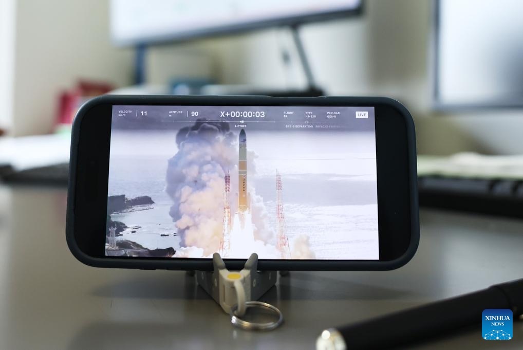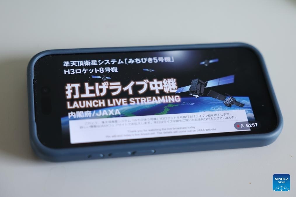 A cellphone screen showing the live broadcast of the launch of Japan's H3 rocket is pictured in Tokyo, Japan, Dec. 22, 2025. Japan Aerospace Exploration Agency launched an H3 rocket on Monday morning, but the second-stage engine ceased combustion prematurely. (Xinhua)