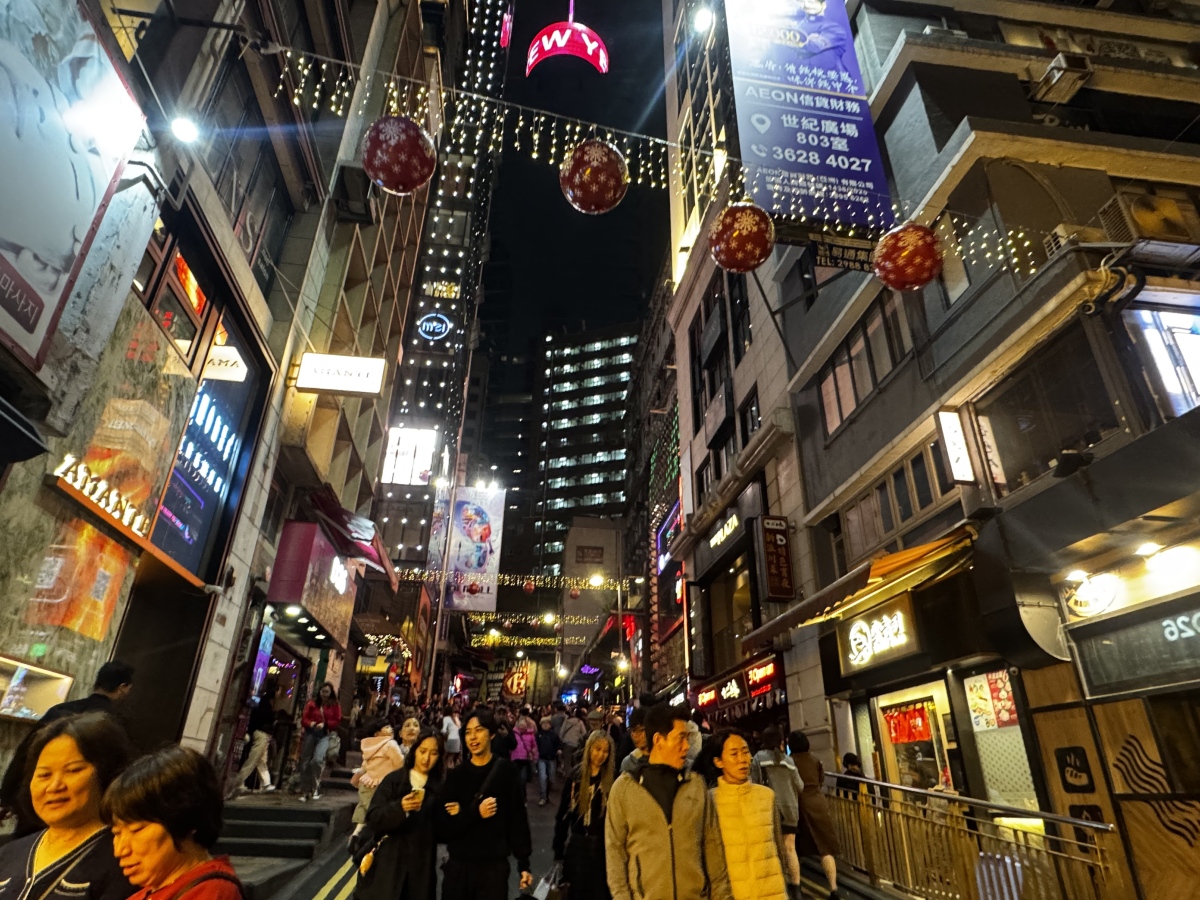 As the night went on, the crowds in Lan Kwai Fong grew denser, but the area remained orderly and manageable. Visitors were still able to pause and take photos without disruptions. People dressed in creative Christmas costumes exchanged warm greetings, creating a heartwarming and festive scene in HK this Christmas.