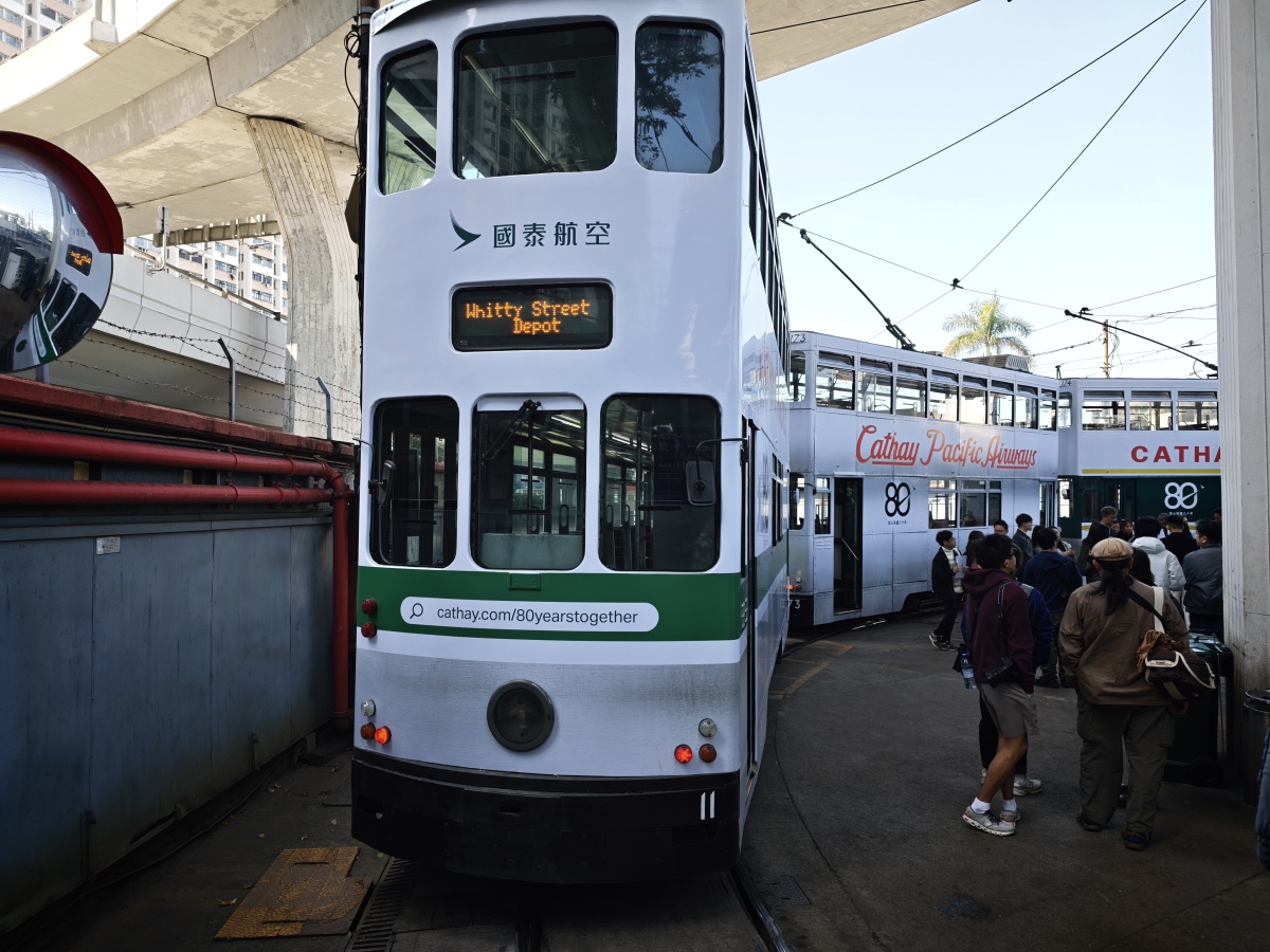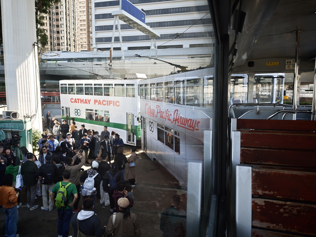 The parade took place from 1 pm to 4 pm, starting at the Kennedy Town Tram Depot and traveling through various locations on Hong Kong Island, with a round trip to North Point. The specially designed party tram showcased Cathay's classic green and white color theme, with the words "CATHAY PACIFIC" and "80 YEARS TOGETHER" printed on its body. Crew members donned ten different historical uniforms to greet the public.