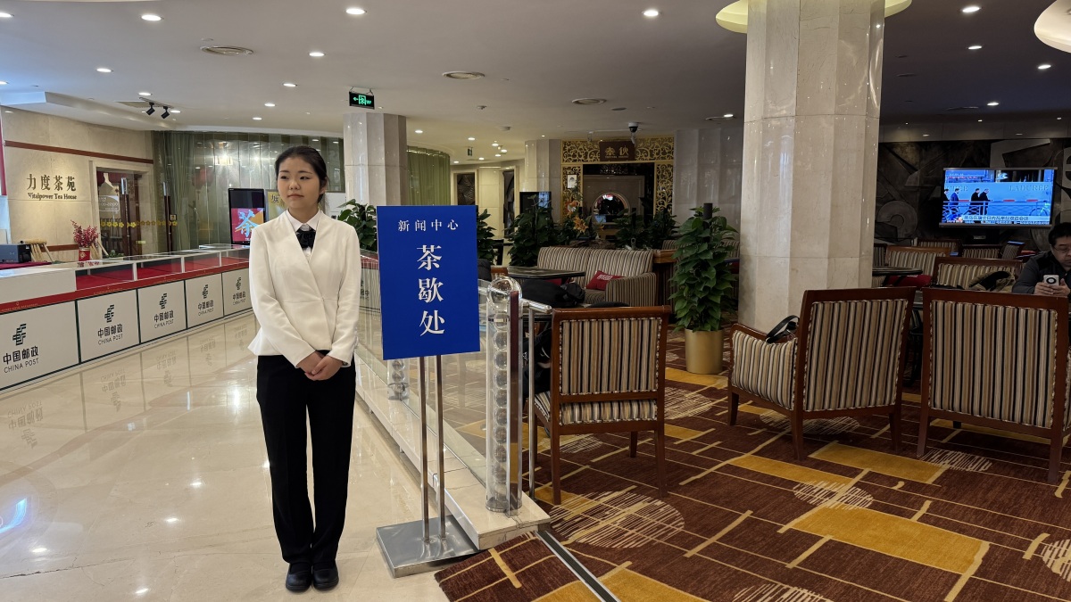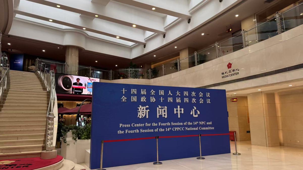 A press center for China's annual sessions of its top legislature and political advisory body, known as the "two sessions," opened on Friday at the Media Center Hotel in Beijing.