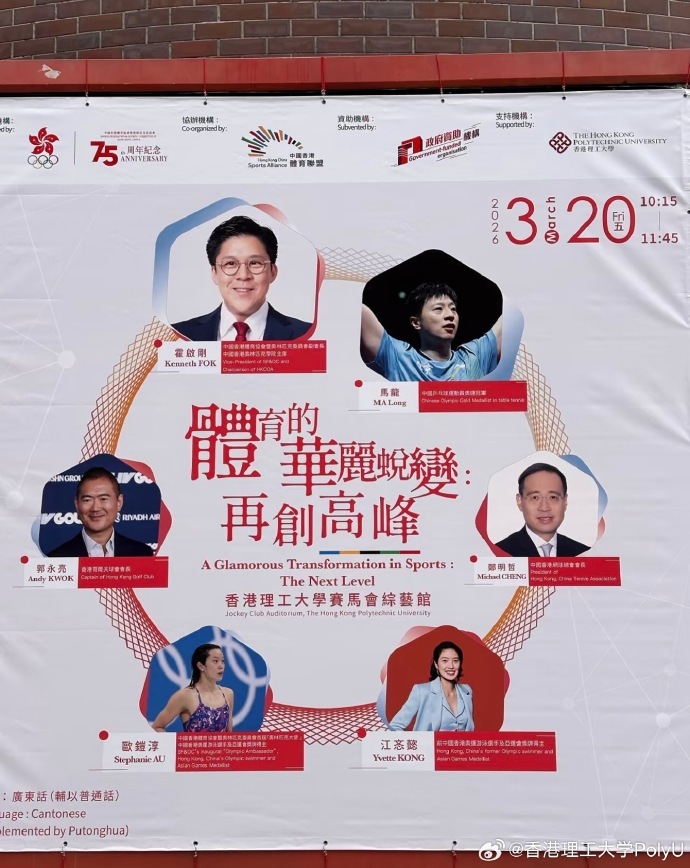 The Hong Kong Polytechnic University confirmed on its social media on March 18 that Ma Long would appear at PolyU to participate in a morning lecture on March 20. Other guests at the event included Kenneth Fok, Hong Kong swimmer Stephanie Au, and Yvette Kong.