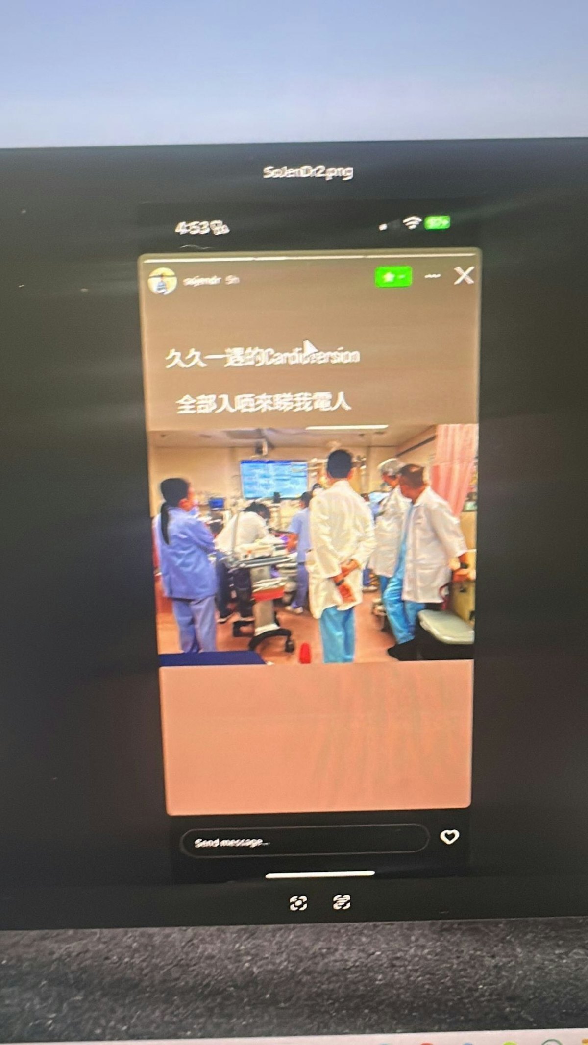 Screenshots uploaded by netizens show the doctor's Instagram account name as "sojendr." His Instagram Story allegedly contained a photo taken inside an emergency resuscitation bay, showing multiple medical staff gathered around a patient undergoing resuscitation. The doctor captioned the post, "A once-in-a-while cardioversion—everyone come in to watch me shock someone." The post sparked wide discussion; the doctor later deleted the post and temporarily changed the account from public to private.