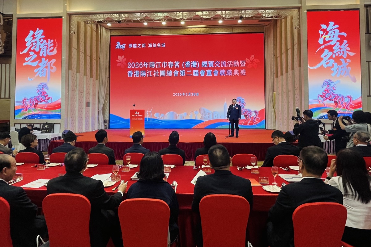 Amid surging tides along the Xiangjiang River and brisk winds over the South China Sea. The 2026 Yangjiang Spring Reception (Hong Kong) Economic and Trade Exchange Event and the Inauguration Ceremony of the Second Board of Directors of the Hong Kong Yangjiang Community General Association were solemnly held in Hong Kong on 28 March 2026. More than 400 representatives from Hong Kong's political and business communities and leaders of social organisations gathered to renew hometown bonds, explore collaboration and pursue shared development.