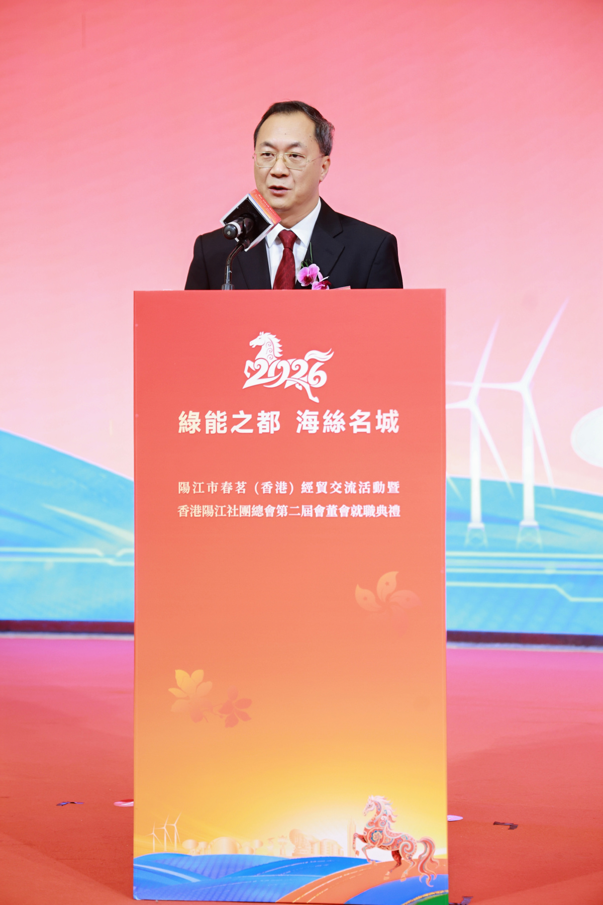 On behalf of the CPC Yangjiang Municipal Committee and the Yangjiang Municipal People's Government, Lu Yixian extended a warm welcome to all leaders and guests present, and expressed sincere gratitude to people from all sectors who have long cared for and supported Yangjiang's development. He noted that Yangjiang and Hong Kong enjoy close geographical proximity, strong kinship ties and close business connections. Hong Kong has for many consecutive years been Yangjiang's largest source of foreign investment and a vital cooperative partner. To date, more than 500 Hong Kong-invested enterprises operate in Yangjiang, accounting for more than half of the city's foreign-funded enterprises.