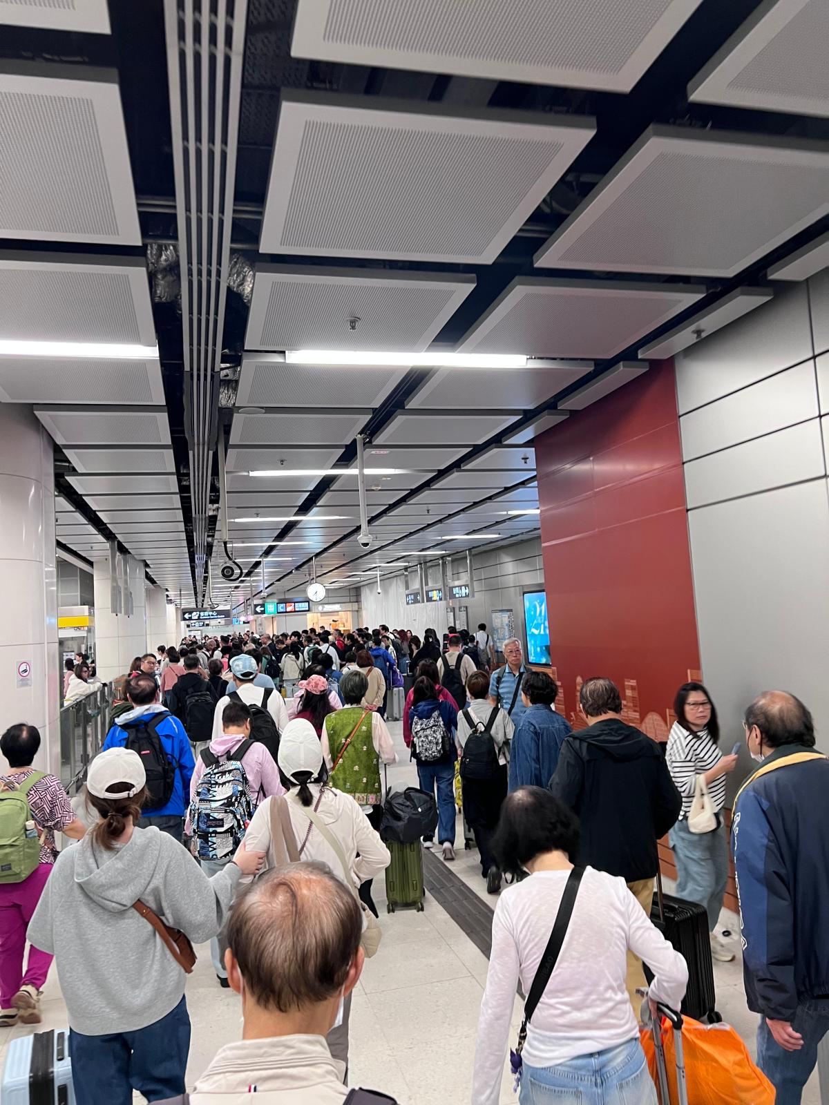 DDN reporters at the scene found the station concourse densely packed this morning, and a queue formed at the Austin Station exit leading to West Kowloon Station as early as 7:30 a.m.