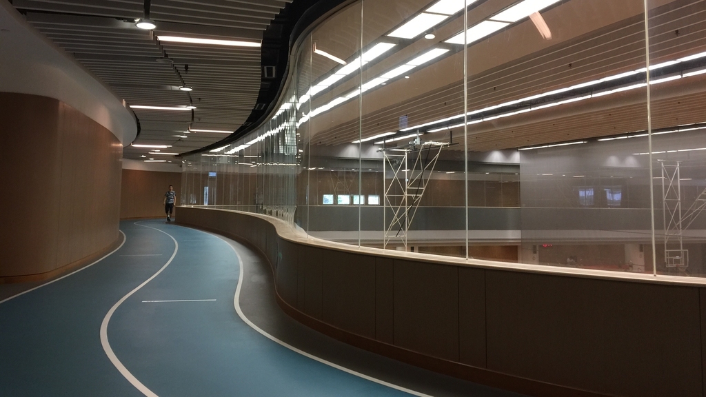 Situated in the Tseung Kwan O Government Complex, this 150-square-metre track includes distance markers and a skylight, providing natural morning light and top-floor views. It is fully air-conditioned and about 10 minutes from Hang Hau MTR Exit B. Maintenance occurs on the second and fourth Tuesdays of each month, from 7:00 AM to 1:00 PM.