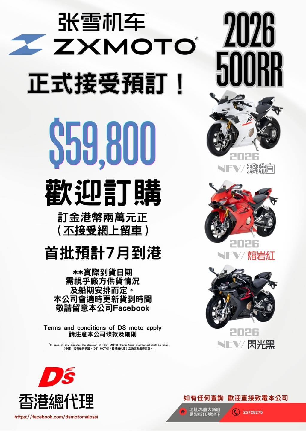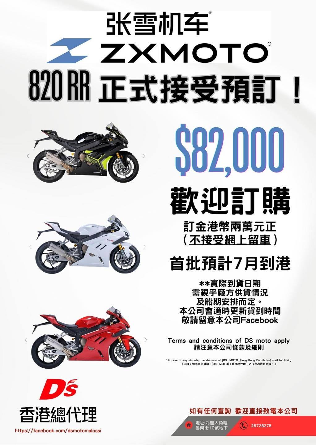 In April of this year, ZXMOTO officially signed with its Hong Kong general distributor. Its flagship racing replica, the 820RR, began pre-orders at a price of HK$82,000 (approximately RMB 76,000), with a deposit of HK$20,000. The first batch has already sold out and is scheduled to arrive in Hong Kong in July, while the second batch is expected to arrive in August. The 500RR is priced at HK$59,800, also with a deposit of HK$20,000, and the first batch is expected to arrive in Hong Kong in July.