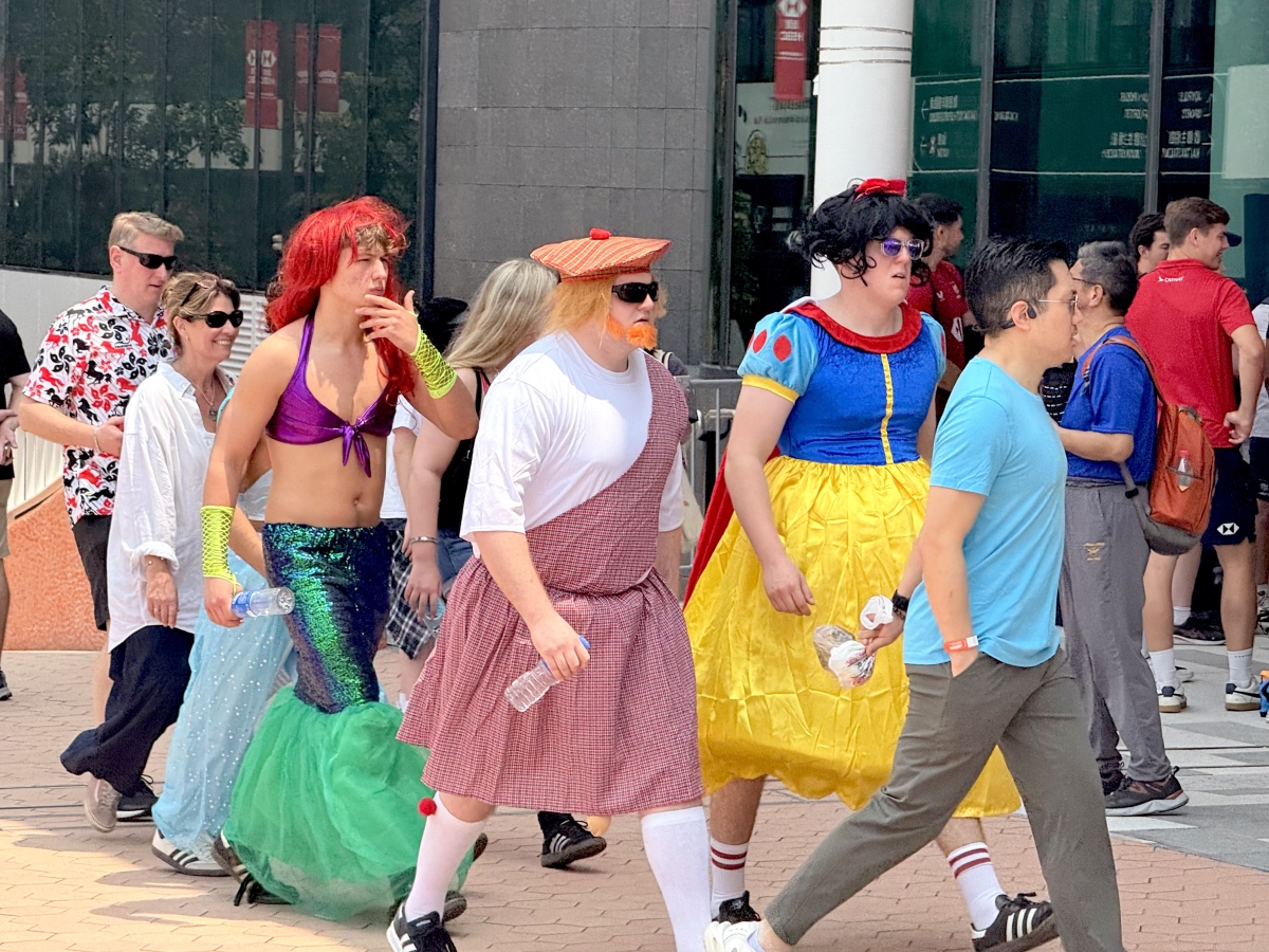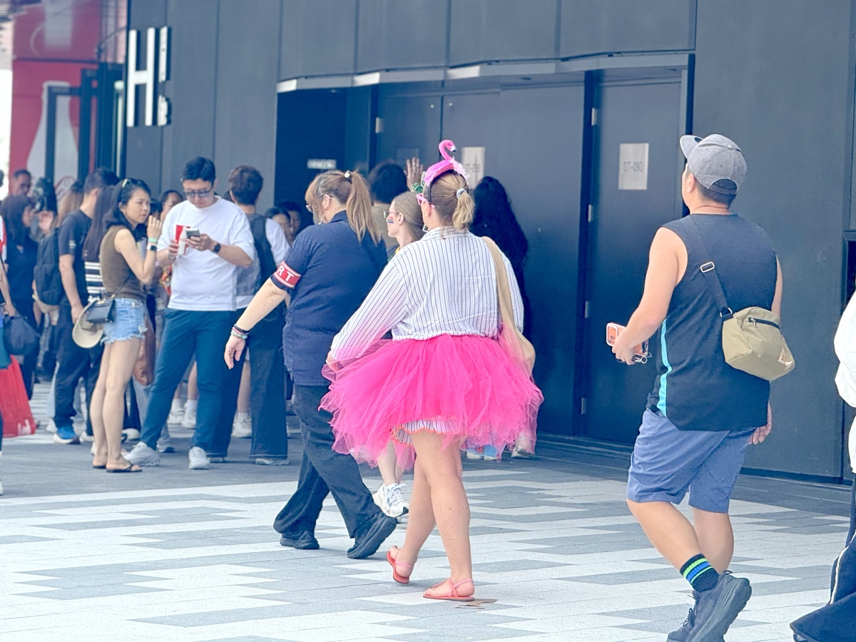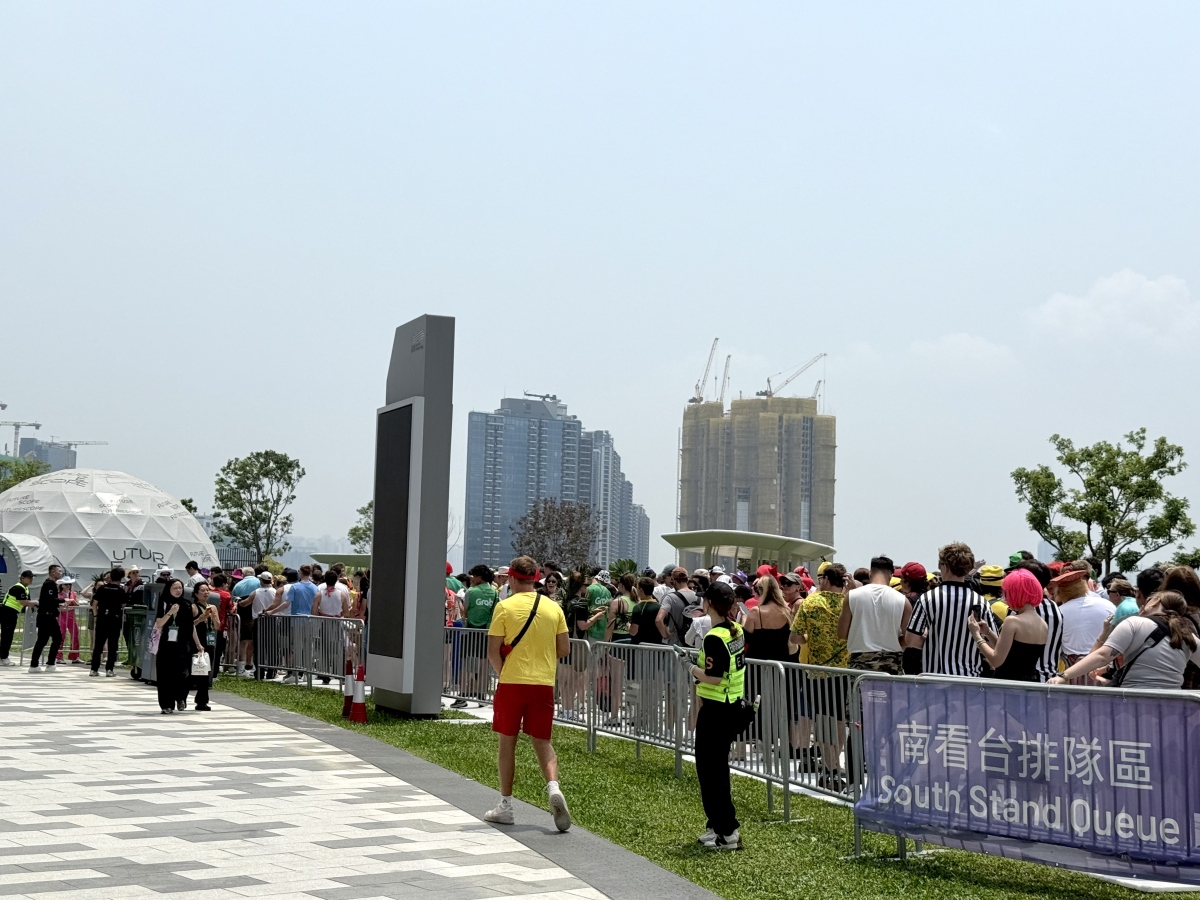 The famously electric "South Stand" has retained its unique character. In addition to fans wearing "I Love HK" T-shirts to cheer on the team, many spectators have dressed up in cartoon character outfits and brought flags to support their favorite teams. As of 11:30 am, nearly 5,000 fans had already entered the South Stand to take part in a series of pre-match warm-up activities and events. The crowds continued to grow, with a peak expected around midday. In response to the rising number of attendees, venue management has implemented immediate crowd control measures, including setting up waiting areas and arranging phased, orderly entry to ensure safety and a quality viewing experience.