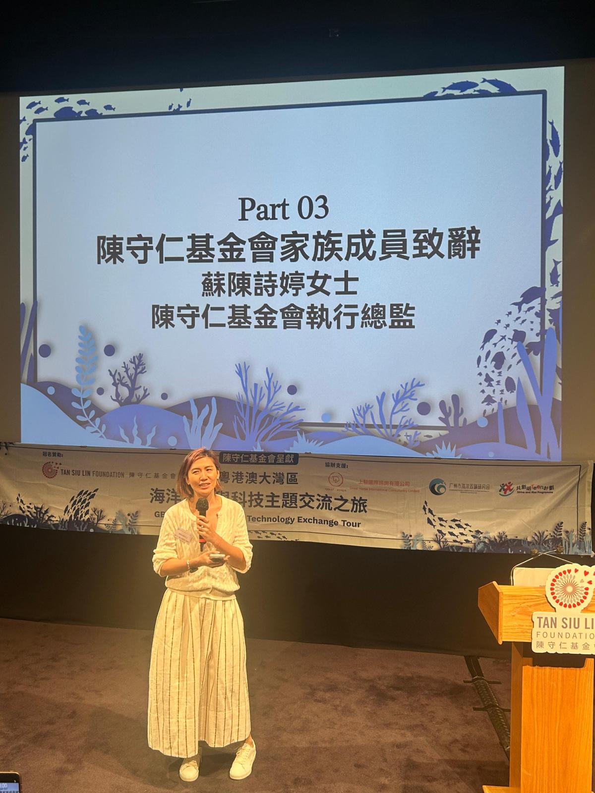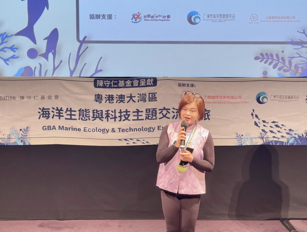 At the ceremony, Ms. Jennifer Tan, the Executive Director of the TSL Foundation congratulated the students for their active participation and dedication throughout the tour. She highlighted that the programme offered participants first hand exposure to leading marine research institutions and ecological protection bases in the Greater Bay Area, allowing them to witness the importance of marine conservation and technological innovation. She encouraged the students to share their experiences with others, turn insights into motivation, and continue to support marine environmental protection and contribute to national technological development, as well as consider to build their future career at the Greater Bay Area.